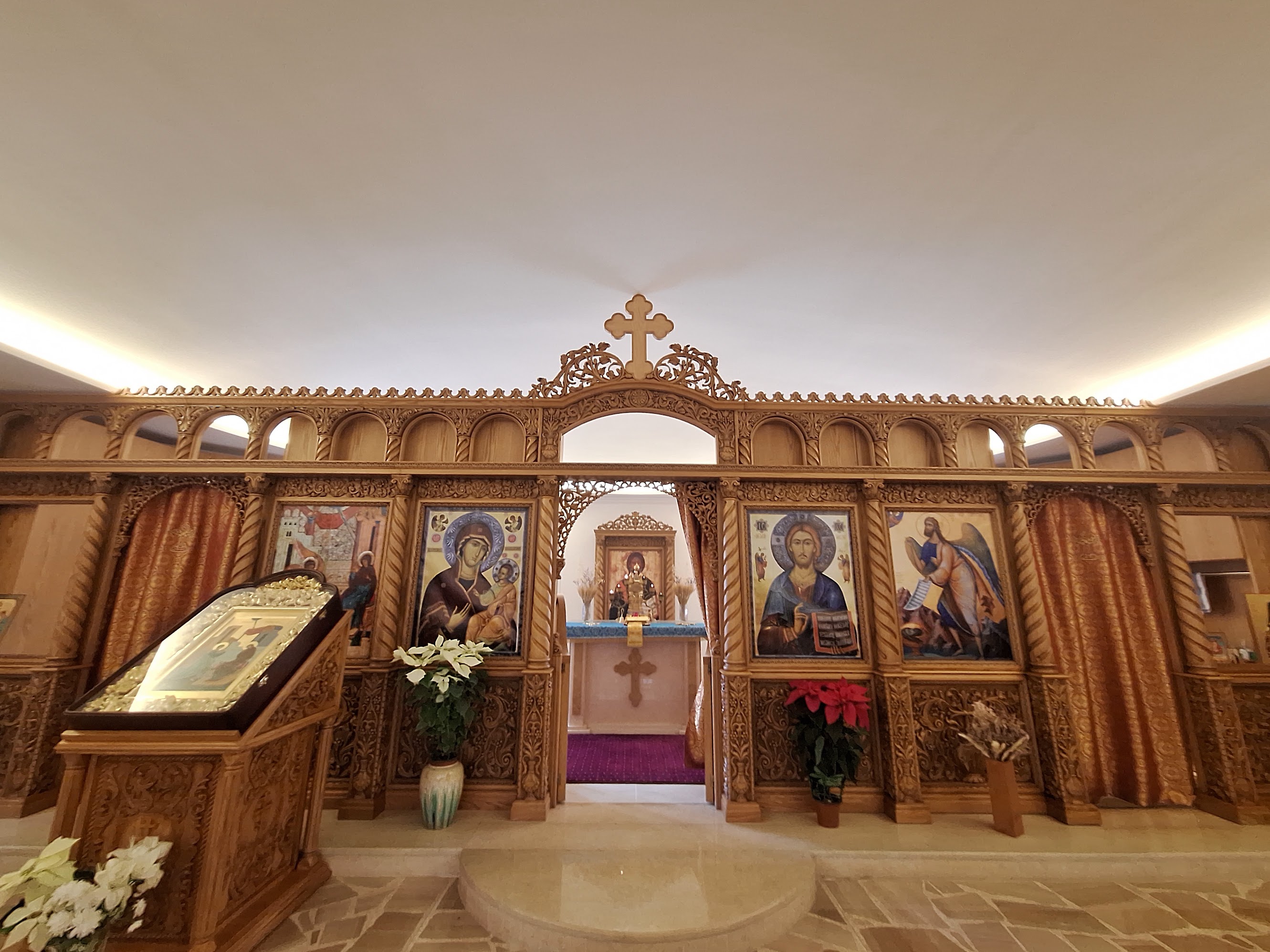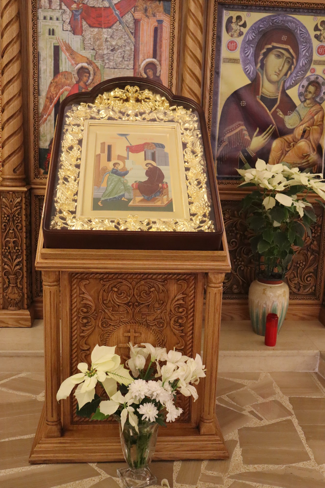 Резной деревянный иконостас храма Благовещения Пресвятой Богородицы был выполнен мастерами одного из древнейших ливанских православных монастырей Успения Пресвятой Богородицы в Хаматуре. Иконы к иконостасу пишутся в древнем русском городе Шуя иконописной мастерской «Алексеевская артель». К Малому освящению мастерами «Алексеевской артели» была написана храмовая икона Благовещения Пресвятой Богородицы, ставшая первой святыней храма.
