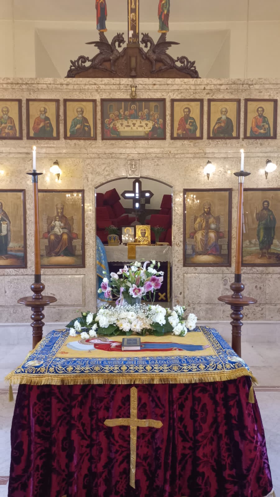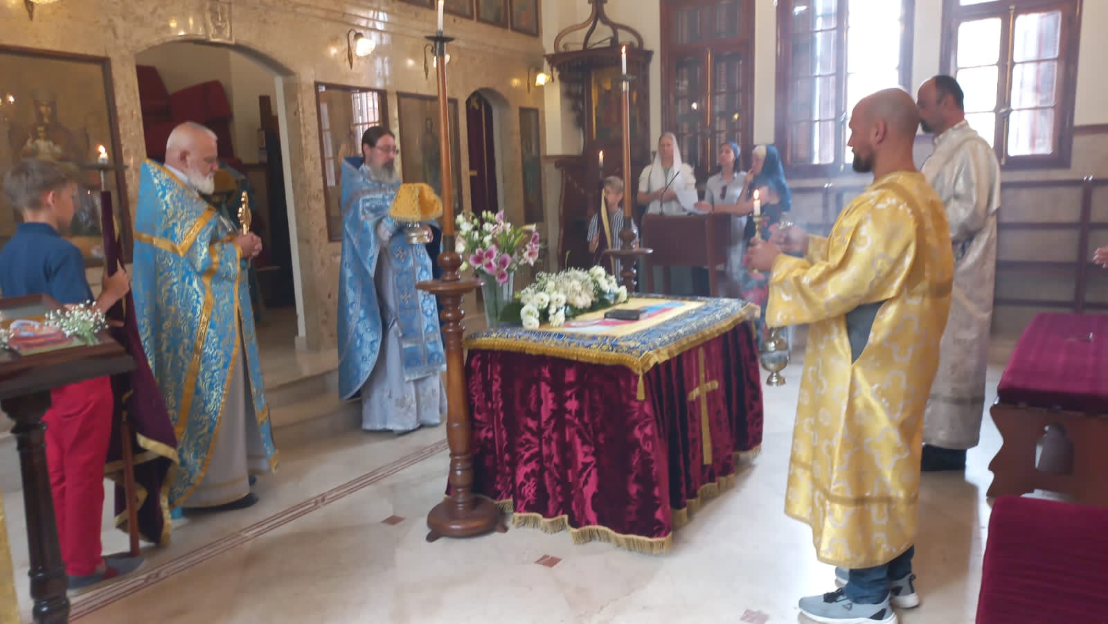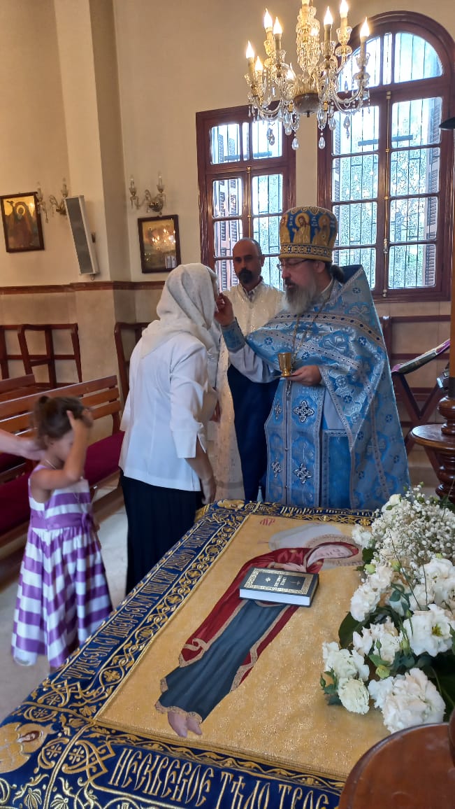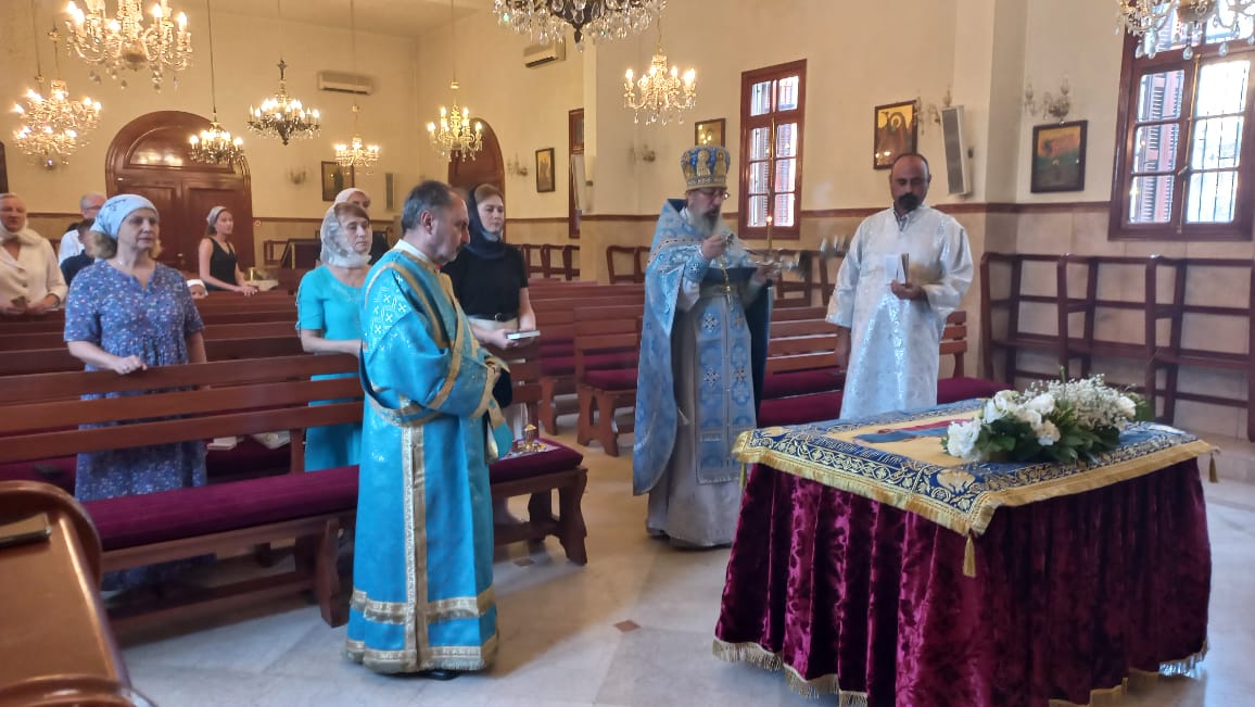 В понедельник, 28 августа, в день Великого двунадесятого праздника Успения Пресвятой Богородицы в храме святого Иоанна Предтечи в Бейруте была совершена Утреня и Божественная литургия. Богослужение возглавил архимандрит Филипп в сослужении протоиерея Иосифа Хури, настоятеля храма в честь святителя Николая Чудотворца в Сайде и диакона Максима Сабаха.
