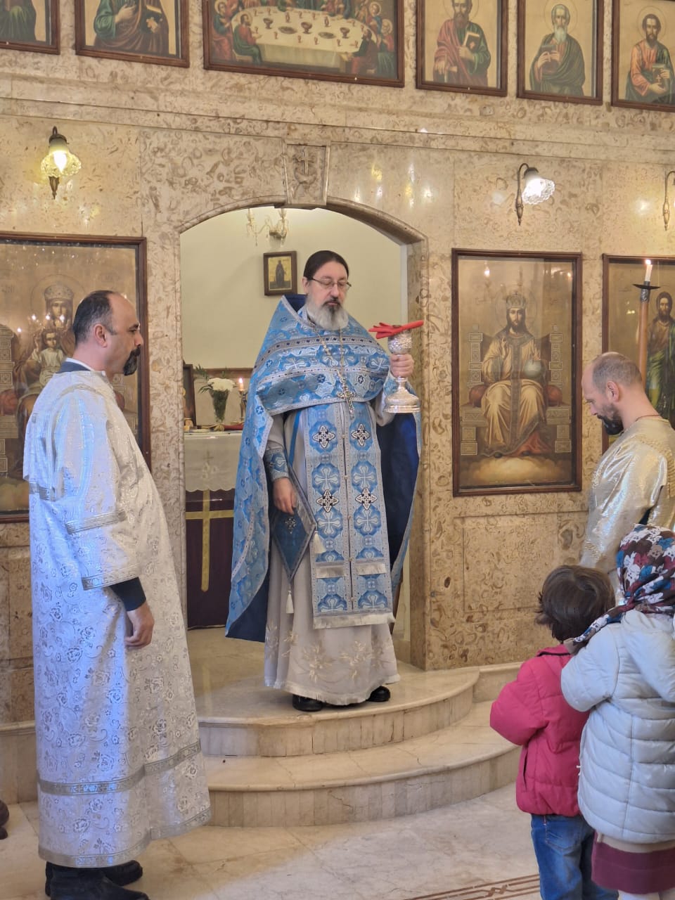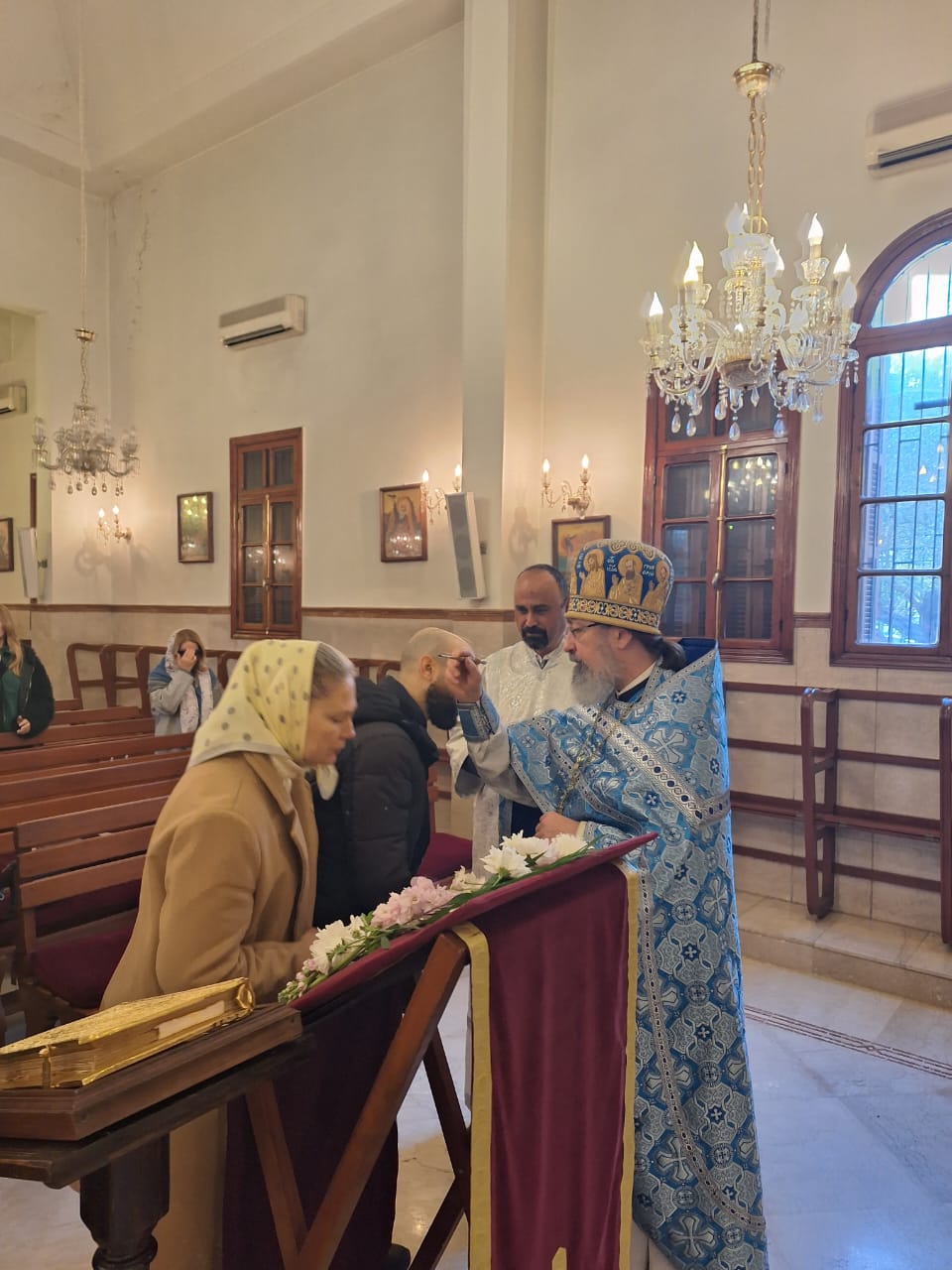 После отпуста Божественной литургии было совершено славление празднику Сретения Господня. Проповедь на тему воскресного евангельского чтения произнёс архимандрит Филипп. Затем настоятель поздравил с прошедшим Днём рождения постоянных прихожан Подворья Иосифа Эль-Хури и Наталью Баальбаки, вручил им памятные подарки и возгласил многолетие.