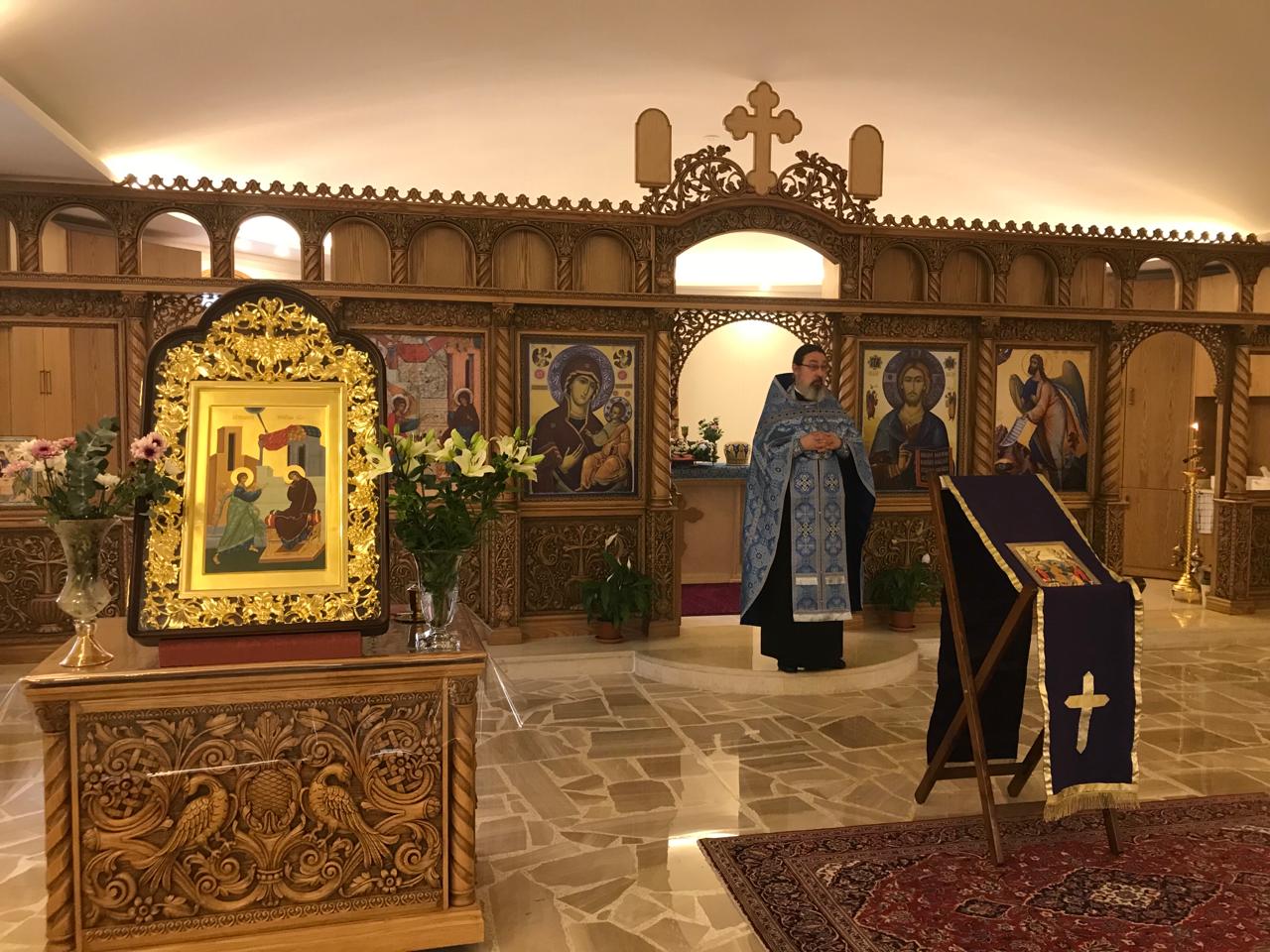 В субботу, 6 апреля, накануне престольного праздника в храме Благовещения Пресвятой Богородицы была совершена Воскресная вечерня. Богослужение совершил архимандрит Филипп . После отпуста Вечерни настоятель Подворья произнёс проповедь на тему праздника и помазал прихожан елеем.