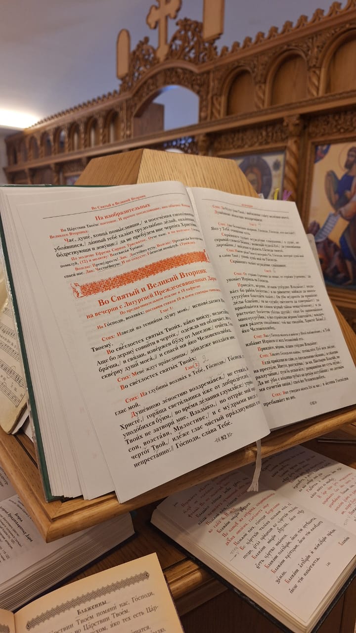 Великий вторник в храме Благовещения Пресвятой Богородицы была совершена Божественная литургия Преждеосвященных Даров. Богослужение совершил архимандрит Филипп.На сугубой ектении были вознесены особые прошения, настоятель Подворья прочитал молитву о Святой Руси.