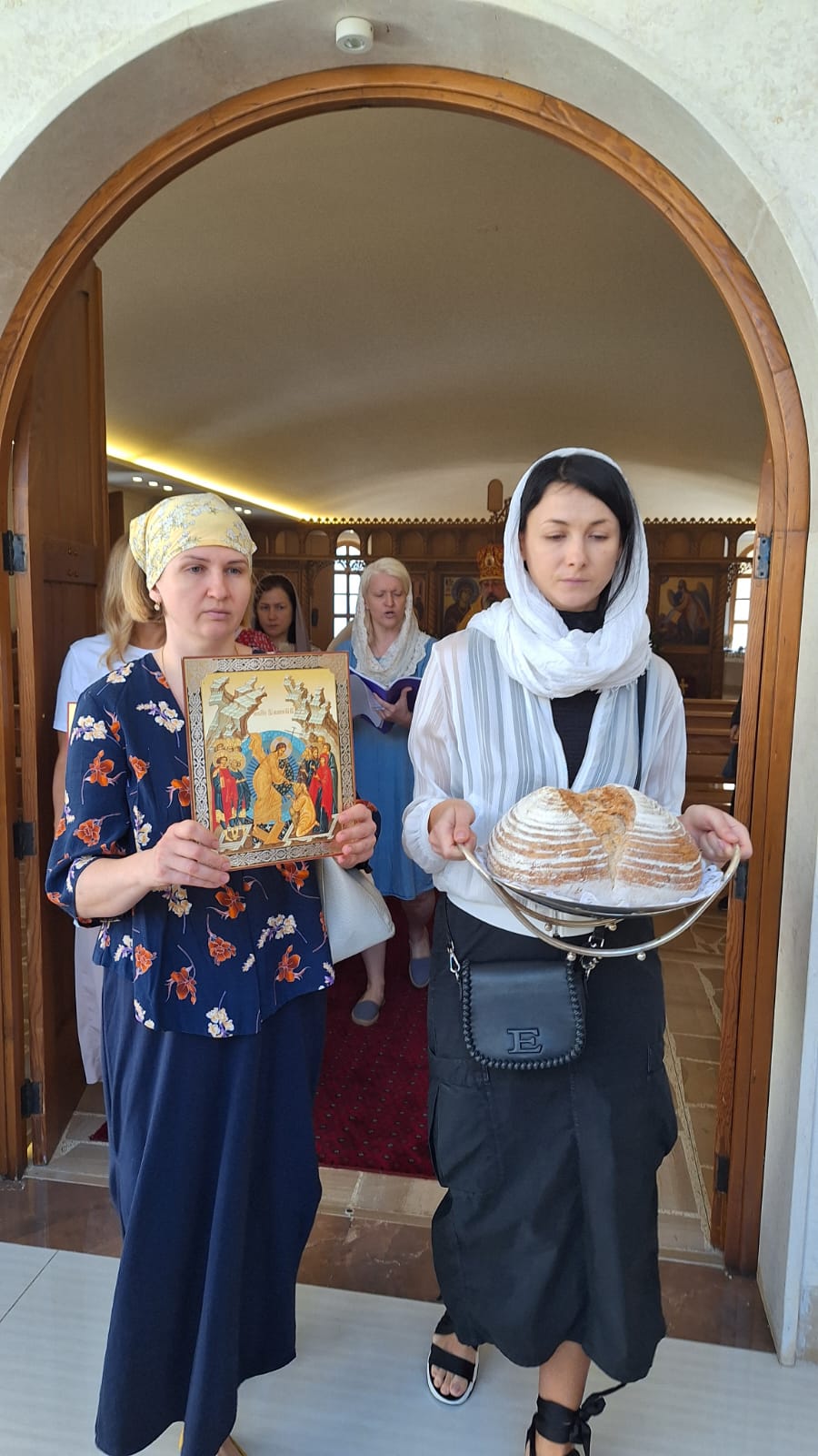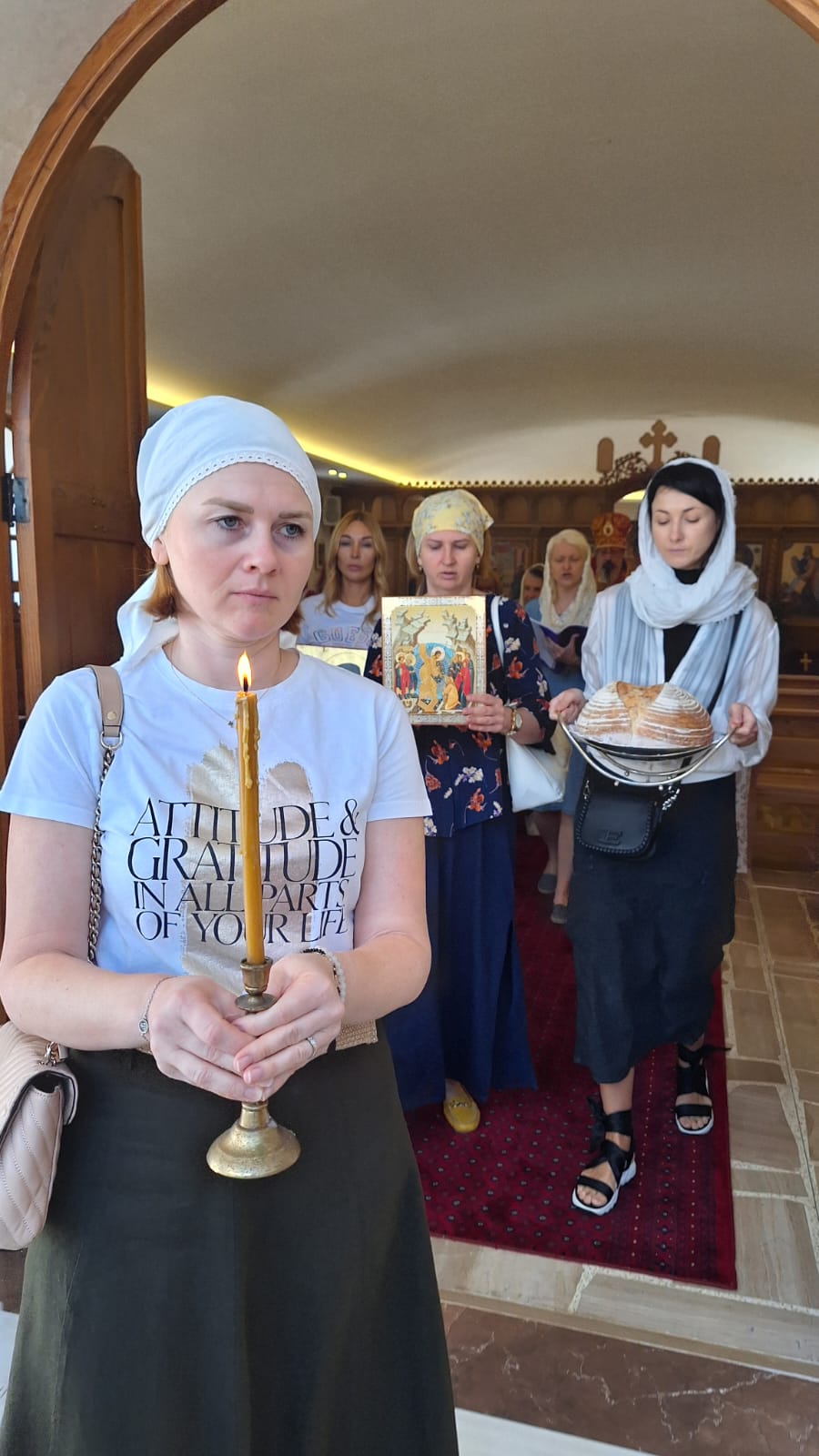 После отпуста Божественной литургии был совершён Пасхальный Крестный ход и благодарственное и молебное пение, певаемое в день Победы в Великой Отечественной Войне.Проповедь на тему евангельского чтения произнёс настоятель Подворья.