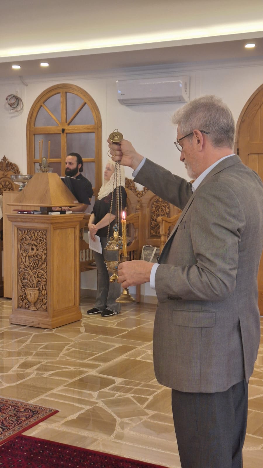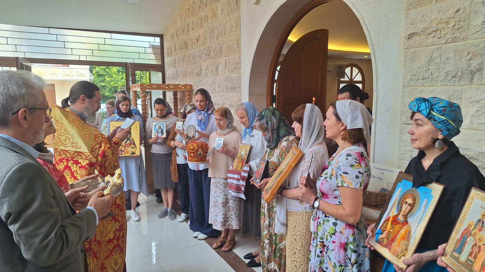 После отпуста Божественной литургии был совершён Пасхальный Крестный ход. Проповедь на тему праздника произнёс архимандрит Филипп. Затем настоятель поздравил с днём Ангела постоянных прихожанок Подворья Ирину Зеленину, Ирину Салху и Ирину Хаддат и вручил им памятные подарки.