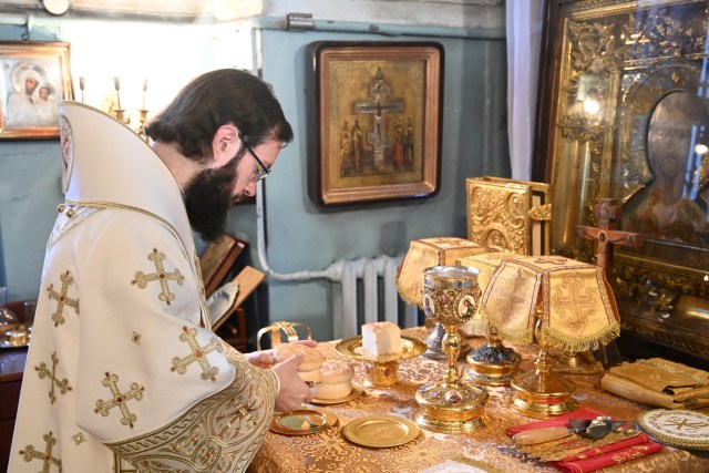 На молитвенную память владыка Нифон подарил митрополиту Антонию и епископу Моисею комплекты, состоящие из панагии и наперсного креста.