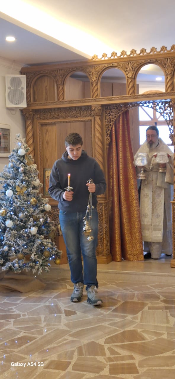 На сугубой ектении были вознесены особые прошения, настоятель прочитал молитву о Святой Руси. После отпуста Божественной литургии было совершено славление празднику Рождества Христова. Проповедь на тему Недели по Рождестве Христовом произнес архимандрит Филипп.