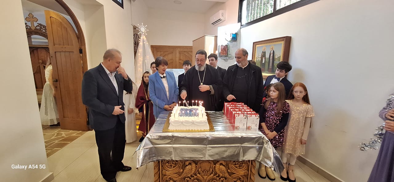 Затем настоятель поздравил с прошедшим днем рождения прихожан Подворья Нидал Хаддад, Александра Семаан и Георгия Касатли, вручил им памятные подарки и возгласил многолетие.