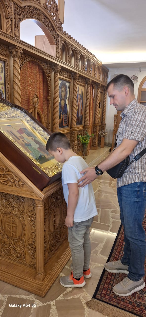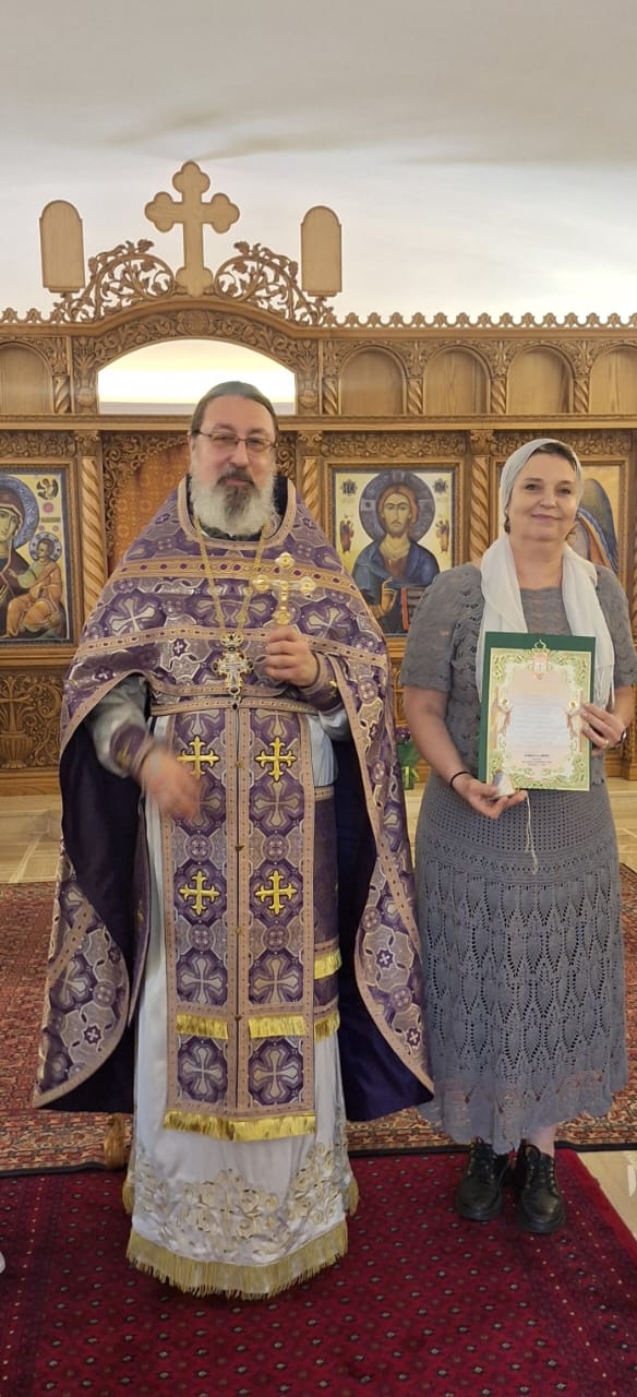 Затем настоятель поздравил с памятными датами постоянных прихожан Подворья Ирину Салху, Романа Хаддата и Иосифа Хури, вручил им памятные подарки и возгласил многолетие.