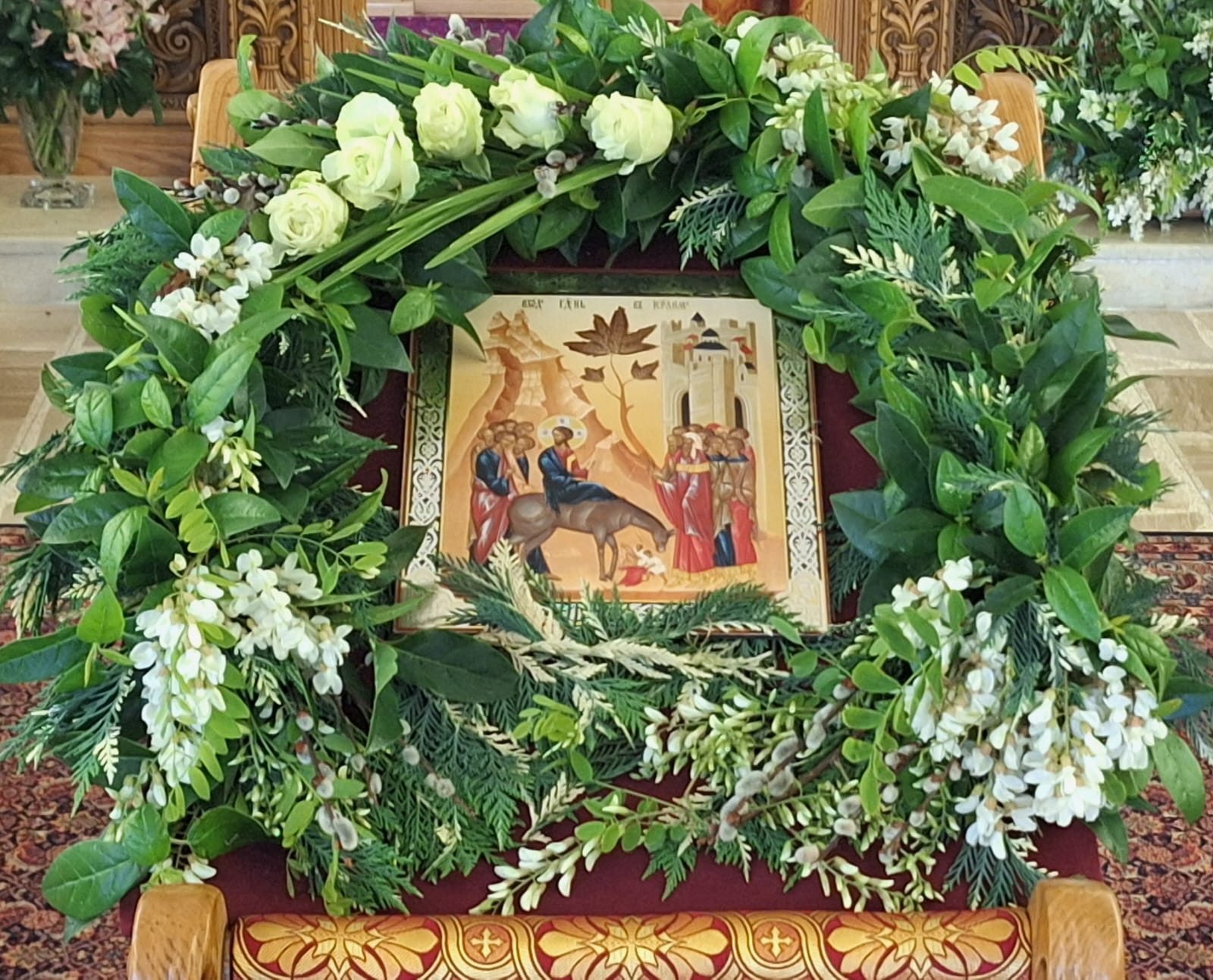 После отпуста Божественной литургии было совершено славление празднику Входа Господня во Иерусалим.