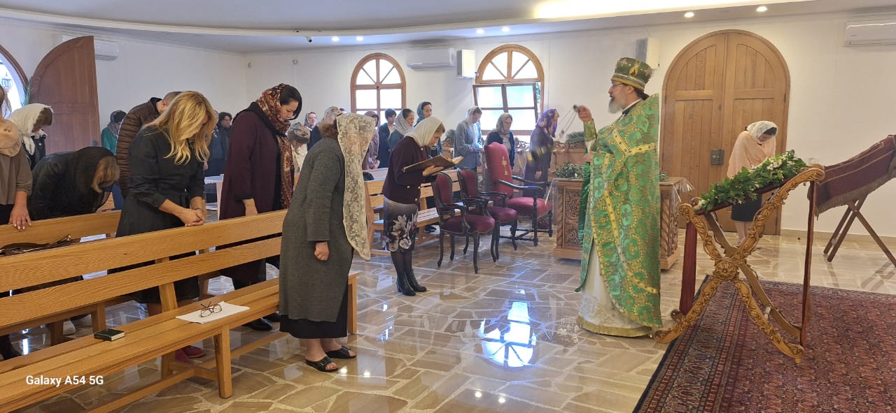 В воскресенье, 13 апреля, в день Великого двунадесятого праздника Входа Господня во Иерусалим в храме Благовещения Пресвятой Богородицы была совершена Утреня с Чином освящения ваий и Божественная литургия святителя Иоанна Златоуста.