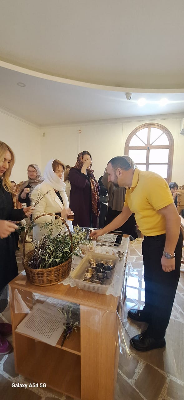 После окончания богослужения в приходском зале храма состоялся показ фильма о празднике Входа Господня во Иерусалим и праздничное чаепитие.
