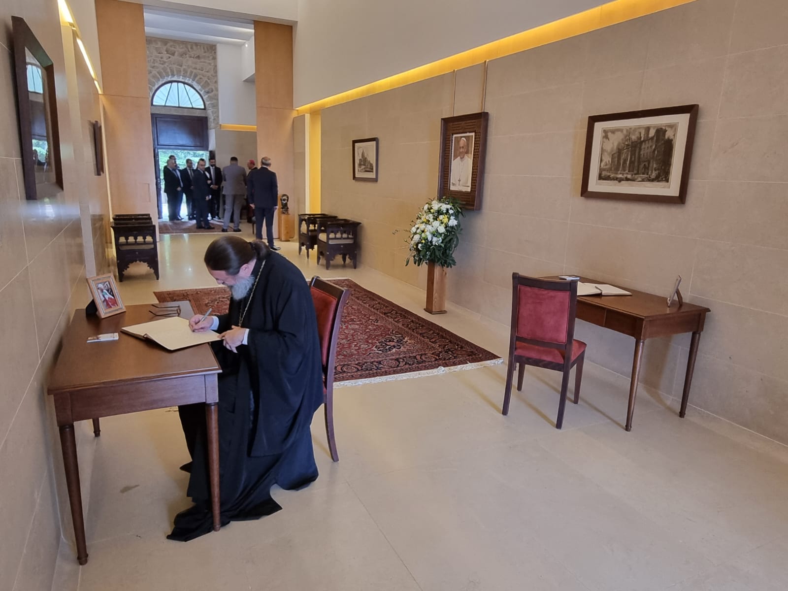Архимандрит Филипп выразил соболезнования от имени общины Подворья связи с кончиной Папы Римского Франциска апостольскому нунцию в Ливане епископу Паоло Борджа, а также оставил скорбную запись в книге соболезнований: