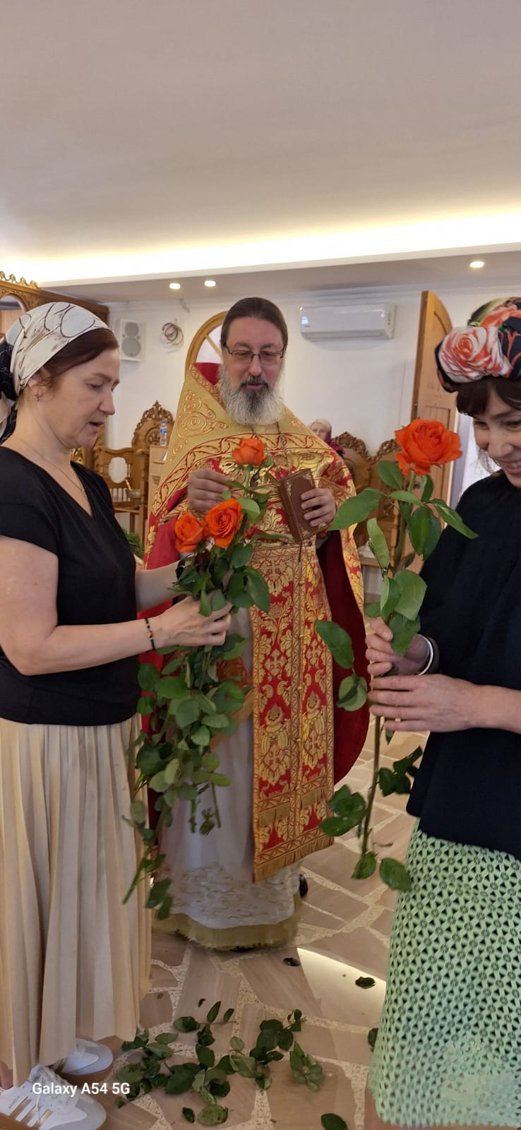 Настоятель поздравил с Неделей святых жен-мироносиц прихожанок Подворья и вручил каждой по красной розе.