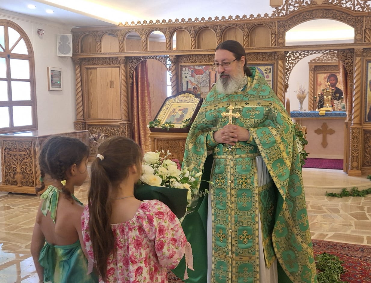 В воскресение, 8 июня, в день Великого двунадесятого праздника Святой Пятидесятницы в храме Благовещения Пресвятой Богородицы была совершена Божественная литургия. Богослужение совершил архимандрит Филипп.