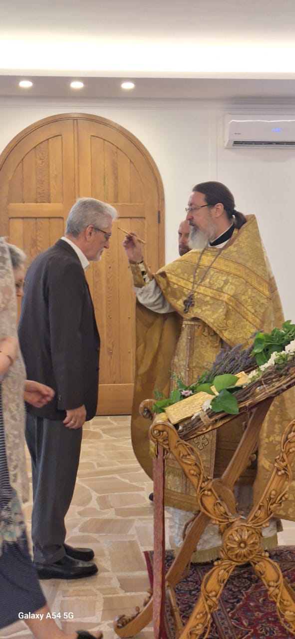 Затем настоятель поздравил с памятными датами постоянных прихожан Подворья Наталию Семаан и Марию Массоуд, вручил им памятные подарки и возгласил многолетие.
