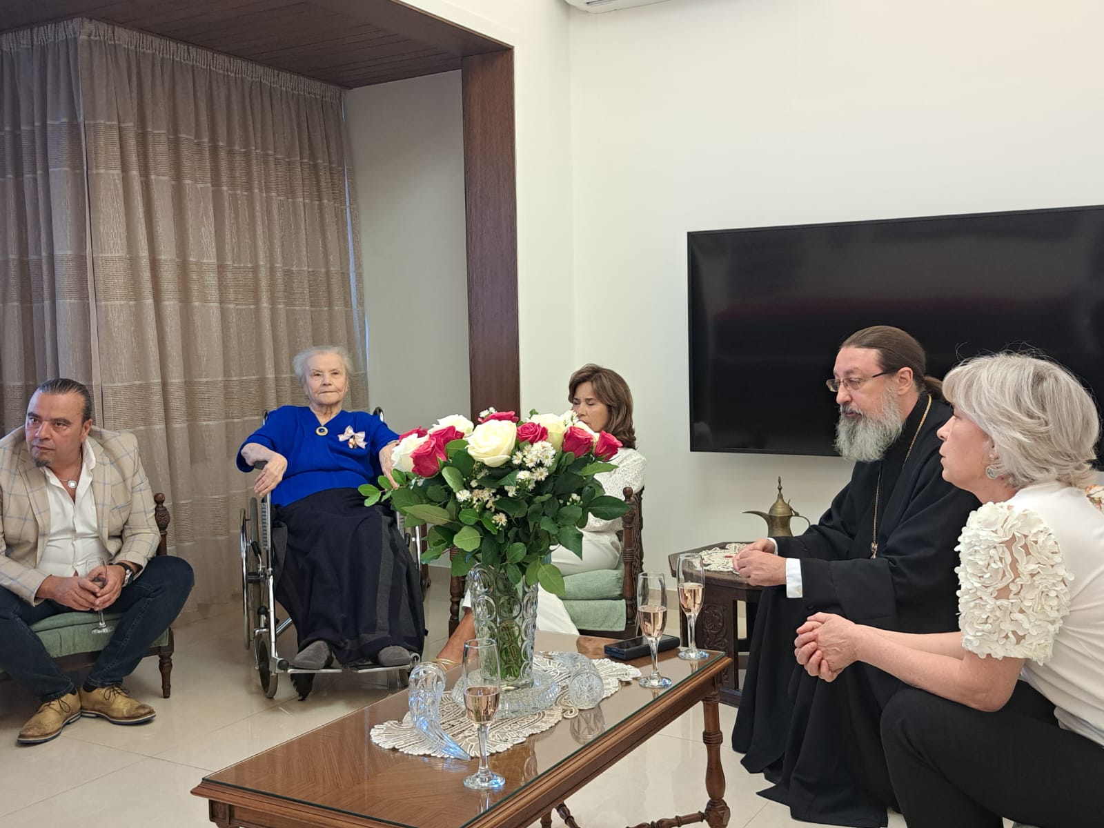 В субботу, 27 сентября, в день Великого двунадесятого праздника Воздвижения Честного и Животворящего Креста Господня архимандрит Филипп посетил старейшую прихожанку Подворья Веру Никитичну Ганем и вручил ей орден Русской Православной Церкви в честь преподобной Евфросинии, великой княгини Московской III степени, которым её наградил Святейший Патриарх Московский и всея Руси Кирилл в связи с 90- летием со дня рождения и многолетние труды на Подворье Русской Православной Церкви в Бейруте.