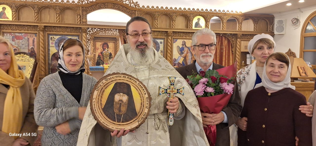 После отпуста Божественной литургии было совершено славление празднику святителя Филиппа. Затем староста Подворья Д.А. Зеленин поздравил с днем Тезоименитства настоятеля и вручил ему памятные подарки. После окончания богослужения в приходском зале храма состоялось братское чаепитие.
