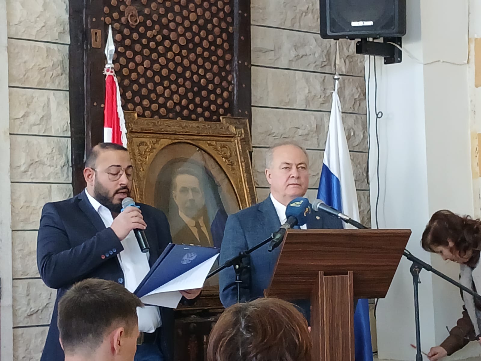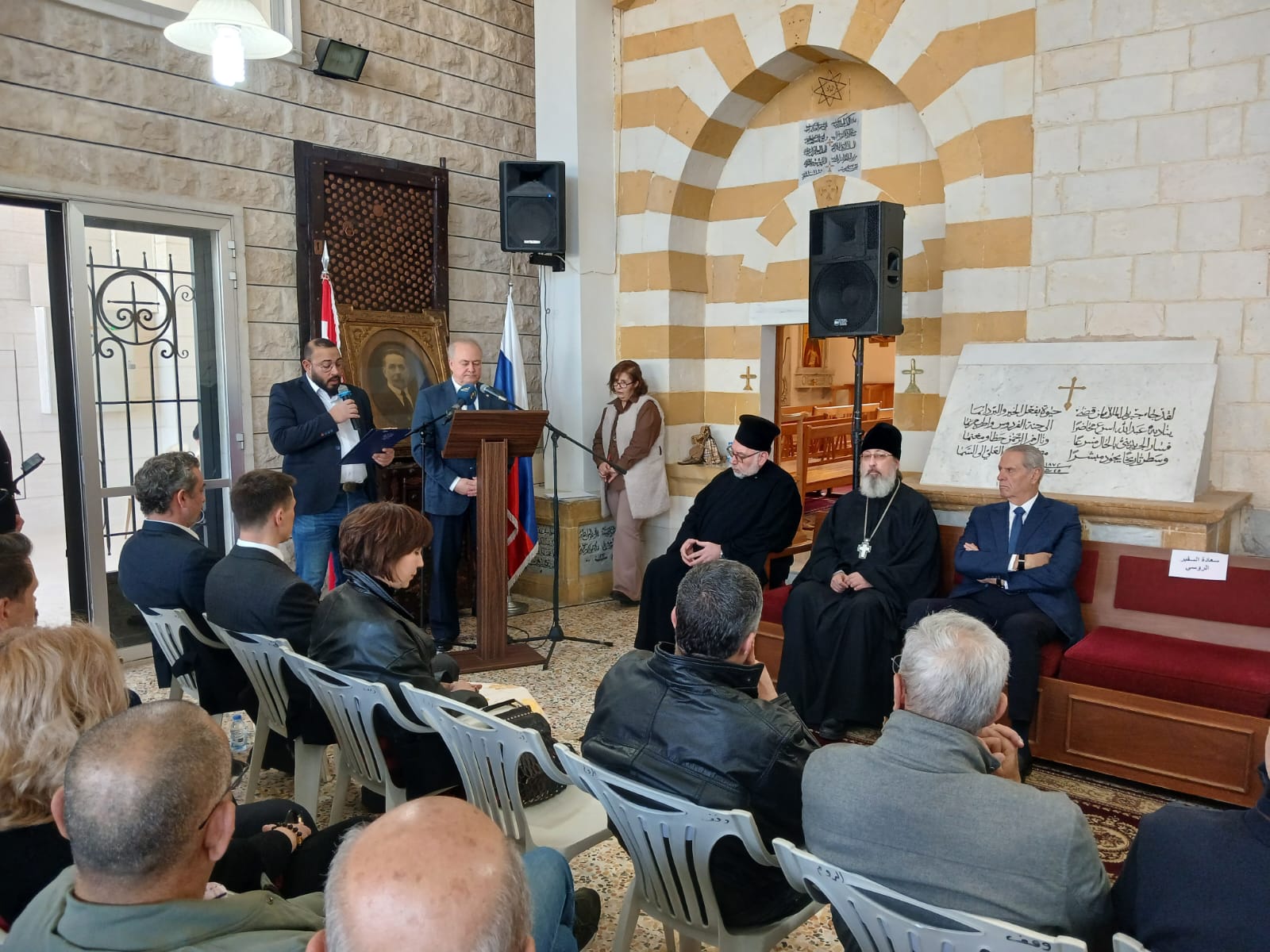 На панихиде присутствовали Чрезвычайный и Полномочный посол Российской Федерации в Ливане Рудаков А.Н, почётный консул Российской Федерации в Ливане Жак Сарраф, Вадиа и Зоя Джурейдини, правнуки А.Ф. Круглова, Марк Дау , депутат парламента Ливана, Недаль Жирди, мэр г. Шуэйфат, Веди Шаар, мэр г. Айнаба, представители российской дипломатической и военной миссии , директор Русского дома в Бейруте Сорокин А.А, исполняющий обязанности директора Русского дома в Дамаске Кухарев И.А., представители общественных и культурных организаций Ливана, прихожане Подворья Русской Православной Церкви. В своем приветственном слове на торжественном собрании перед панихидой Чрезвычайный и Полномочный посол Российской Федерации в Ливане Рудаков А.Н, в частности, сказал: \"Для меня большая честь поприветствовать всех, кто пришел сегодня в церковь Успения Пресвятой Девы Марии, чтобы вместе с нами отметить один из наиболее заметных профессиональных праздников современной России – День дипломатического работника. По традиции мы собираемся в этот день, чтобы отдать дань памяти выдающимся российским государственным деятелям, которые внесли значительный вклад в развитие и укрепление международных связей России. Под сенью этого прекрасного храма мы возлагаем венки к последнему пристанищу генерального консула Российской Империи в Иерусалиме Алексея Федоровича Круглова\".
