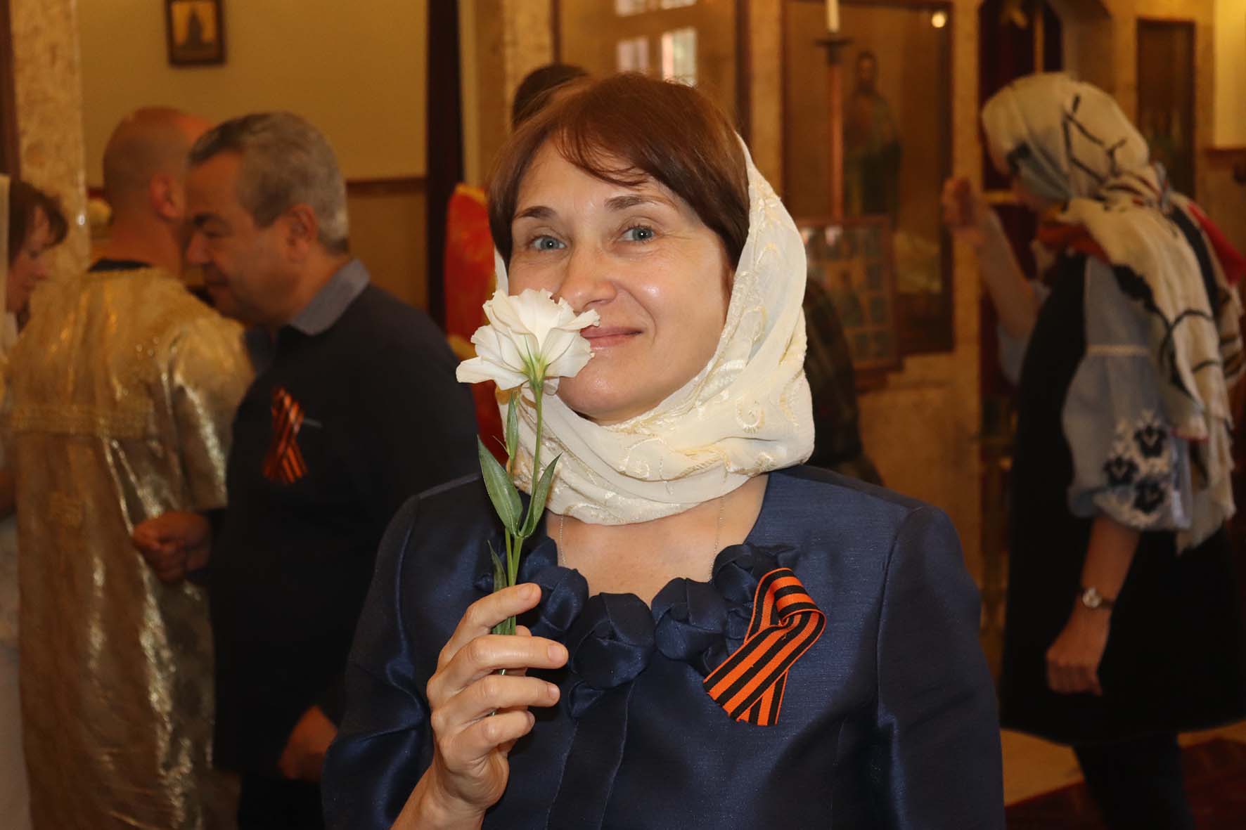 После отпуста Божественной литургии по сложившейся традиции настоятель поздравил прихожанок Подворья с Днём жен-мироносиц и подарил каждой розу.