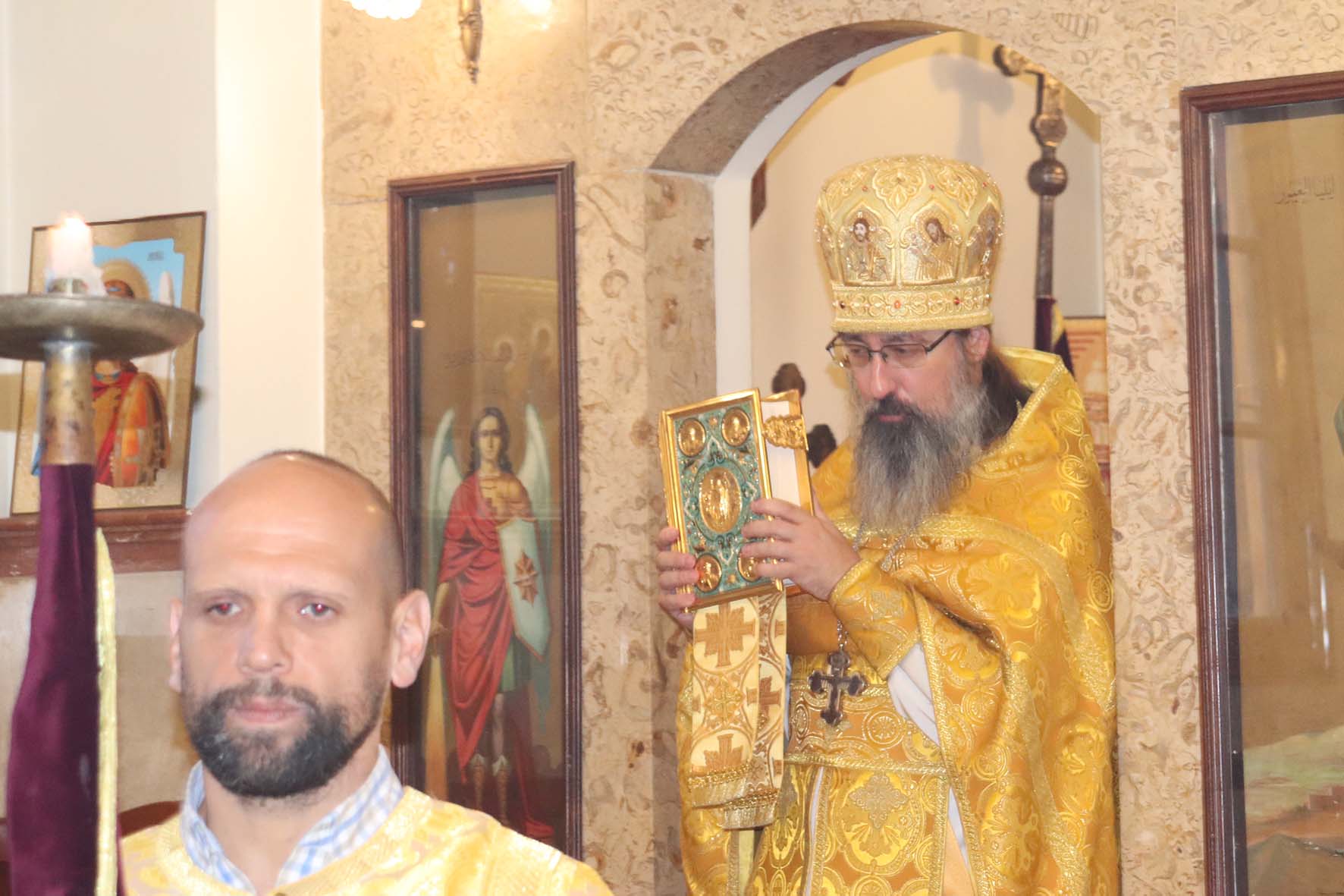 После отпуста Божественной литургии был совершен молебен в путь шествующим для паломников, отбывающим в понедельник в Италию к святыням Древней Церкви.