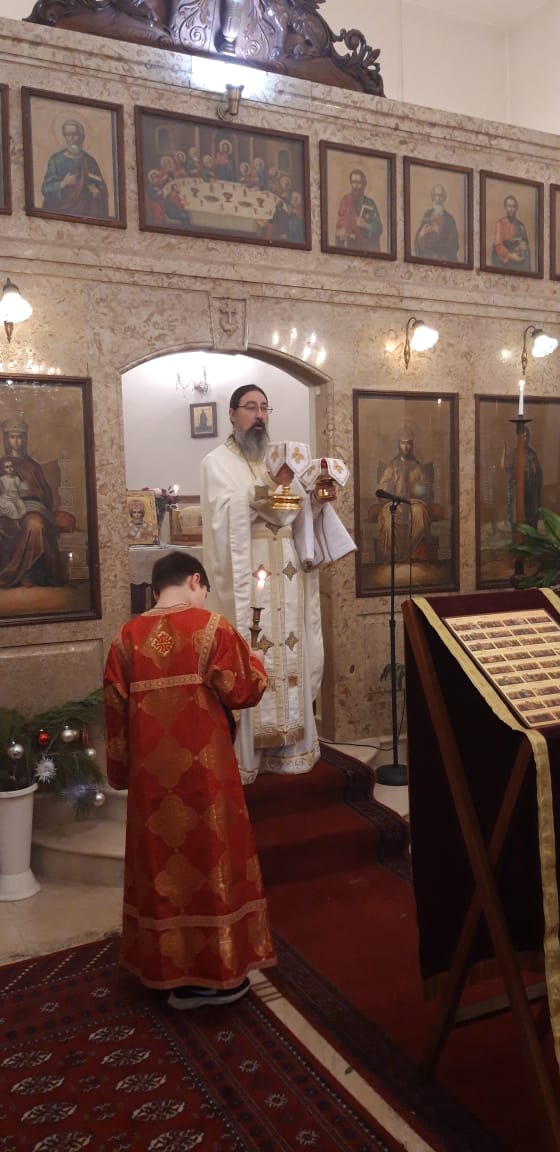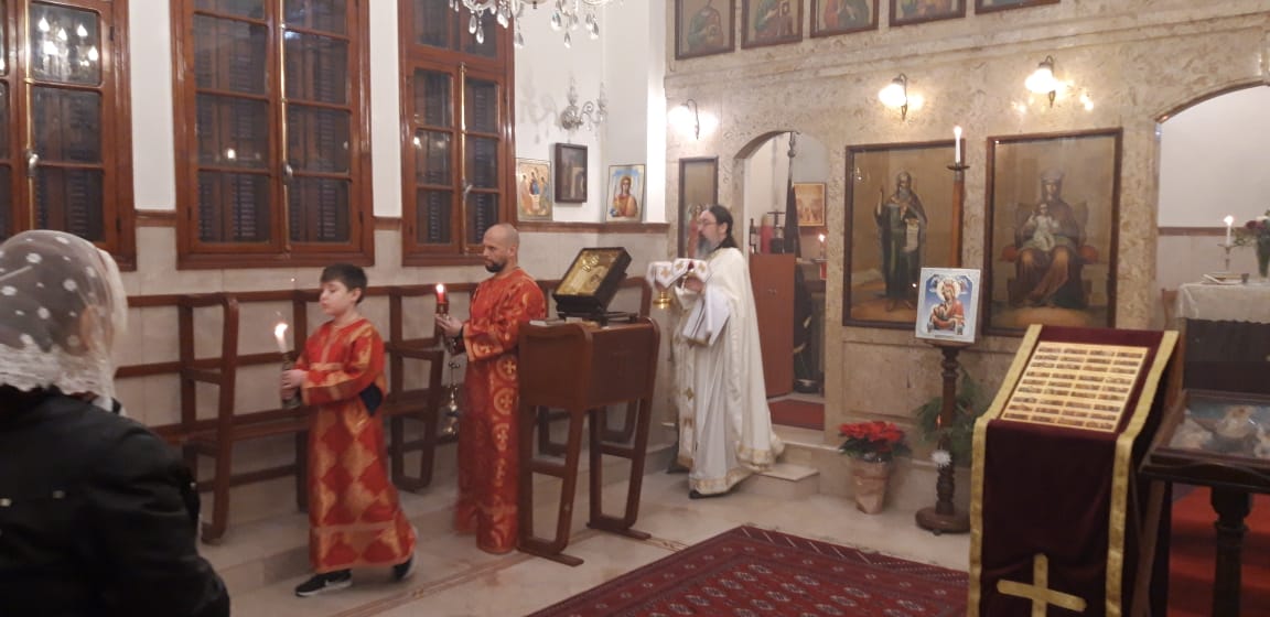 После отпуста Божественной литургии настоятель объявил расписание богослужений на ближайшую седмицу и паломническую поездку в Дамаск на Великий двунадесятых праздник Сретения Господня 15 февраля.