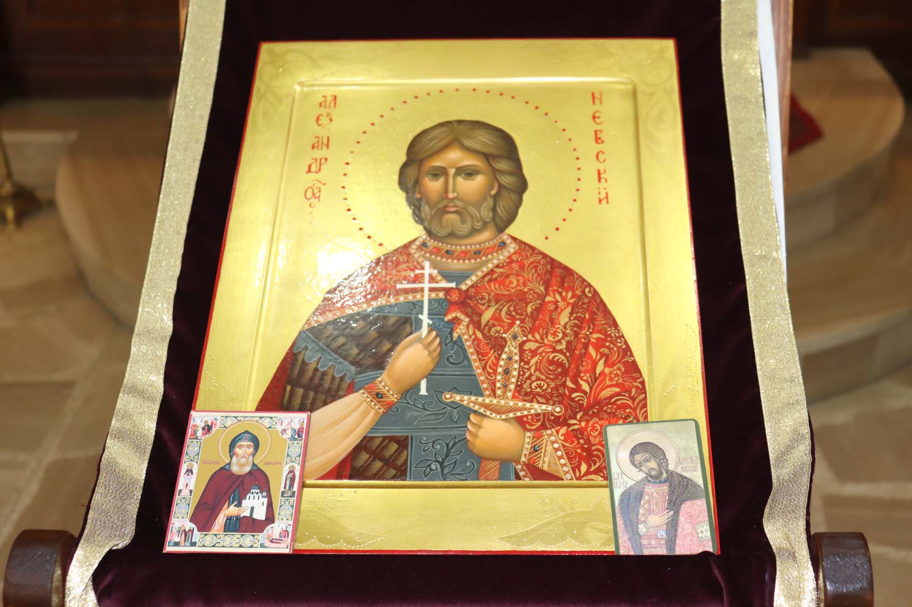 После отпуста Божественной литургии было совершено освящение иконы св.блгв. князя Александра Невского и славление празднику святого.