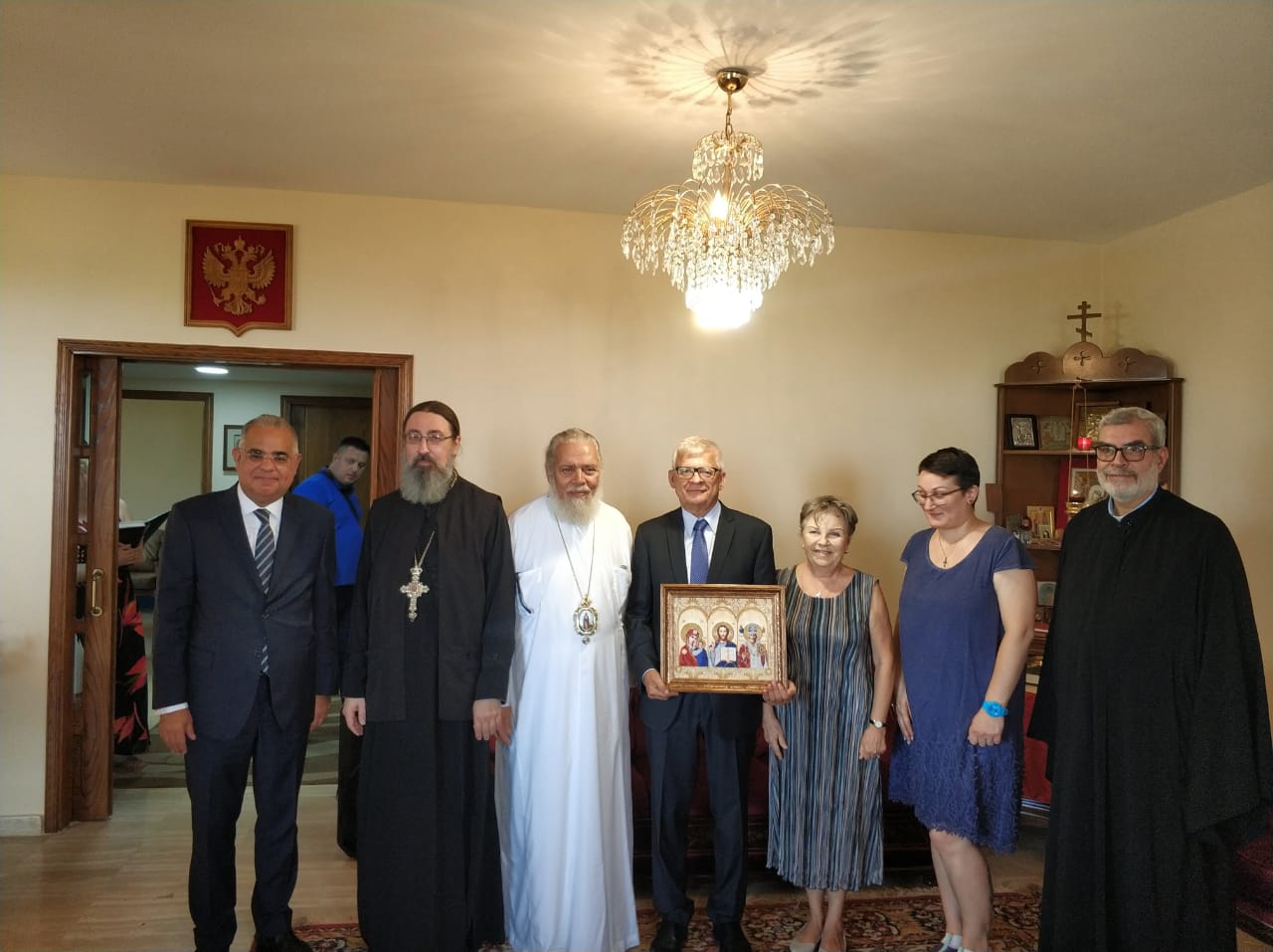 Настоятель Подворья тепло приветствовал господина посла по случаю окончания его миссии в Ливанской Республике и зачитал указ Святейшего Патриарха Московского и всея Руси Кирилла о награждении его орденом св. прп. Сергия Радонежского III степени за активную поддержку деятельности Подворья Русской Православной Церкви в Ливанской Республике.