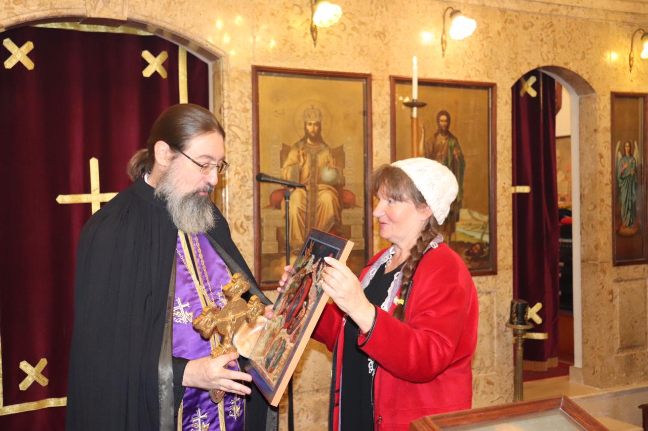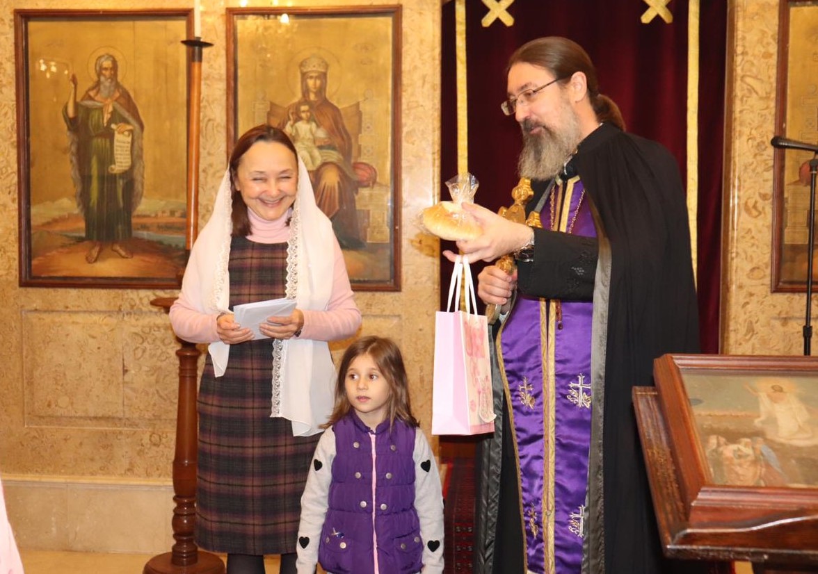 Затем настоятель поздравил юную прихожанку Подворья Киру Азари с днём Ангела, подарил ей памятный подарок и провозгласил многолетие.