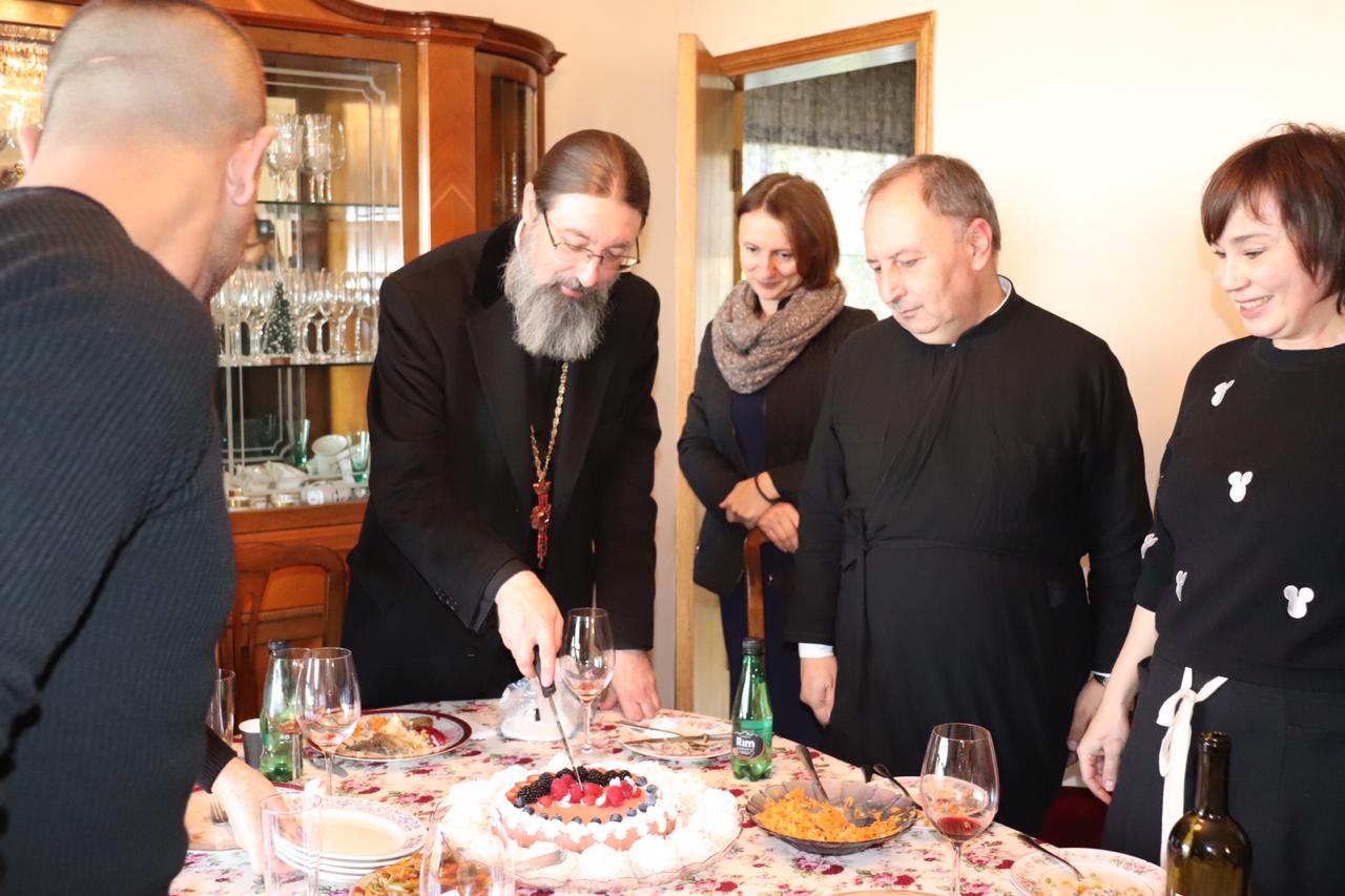 После окончания богослужения староста Подворья Д. Зеленин поздравил настоятеля с Днём рождения.
