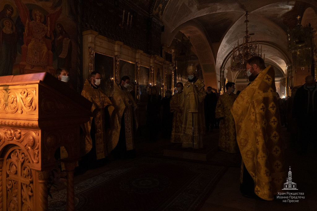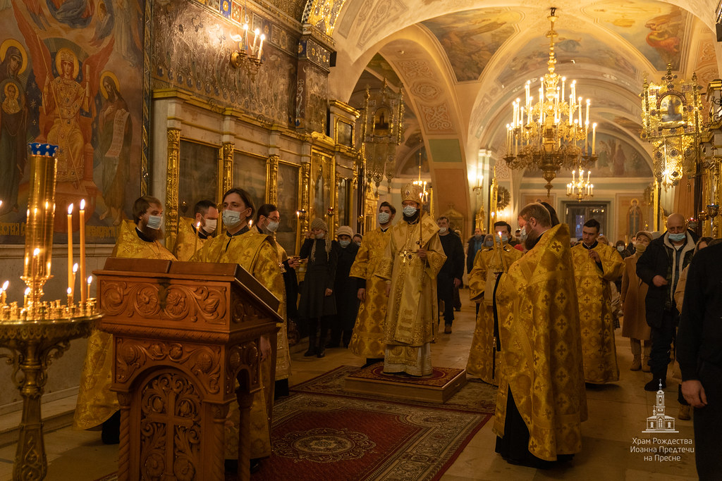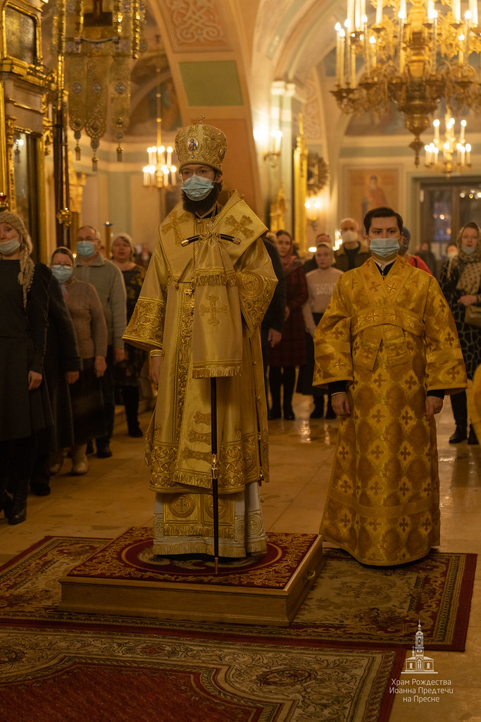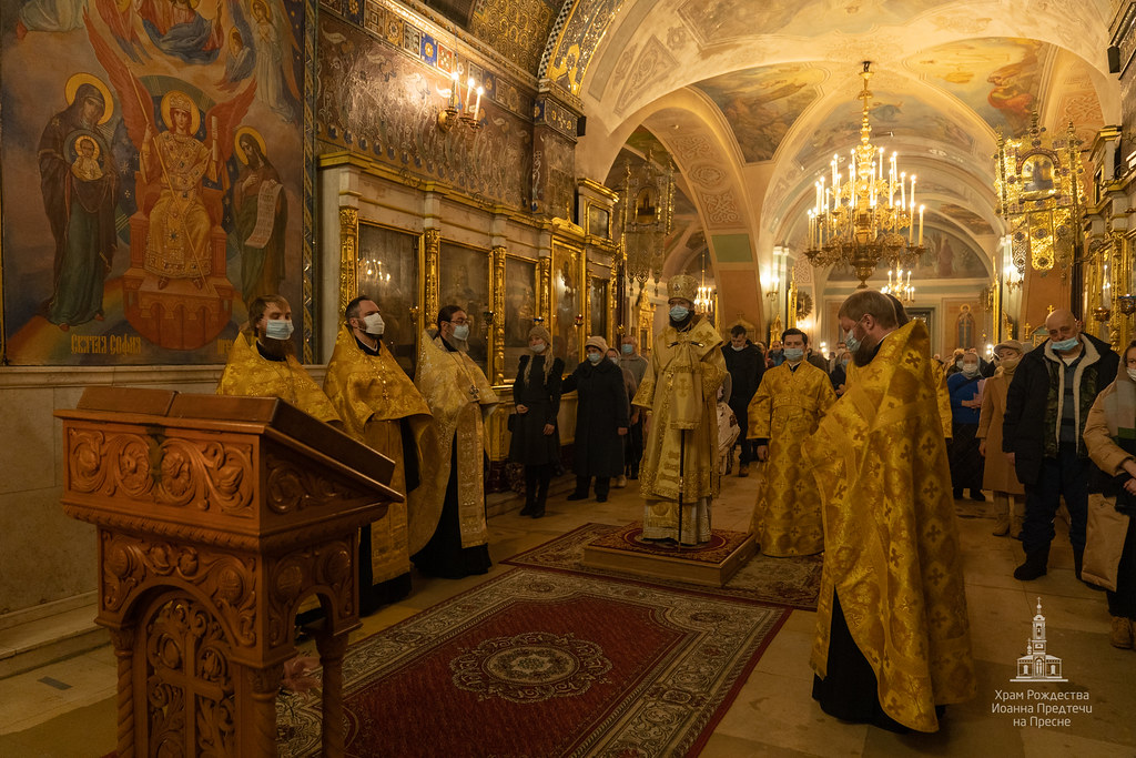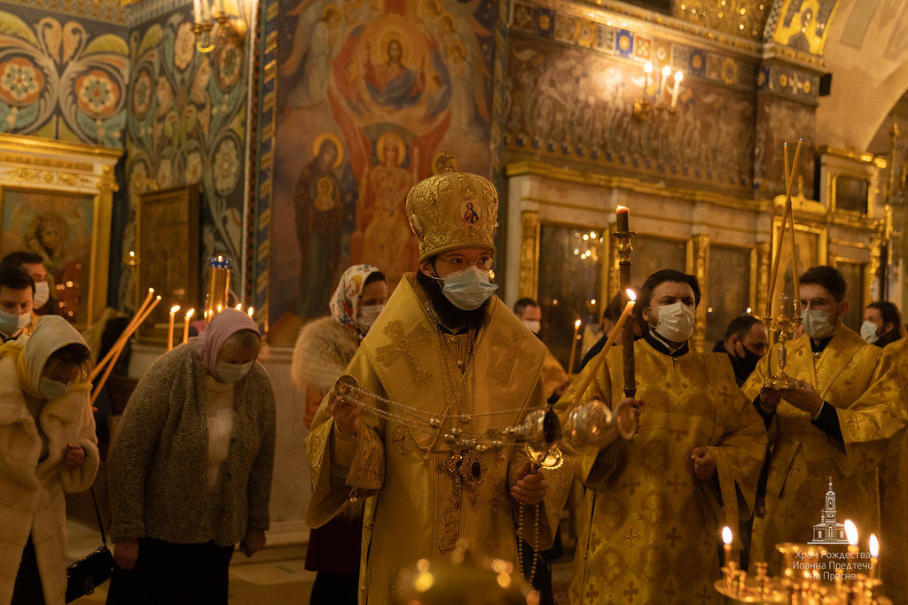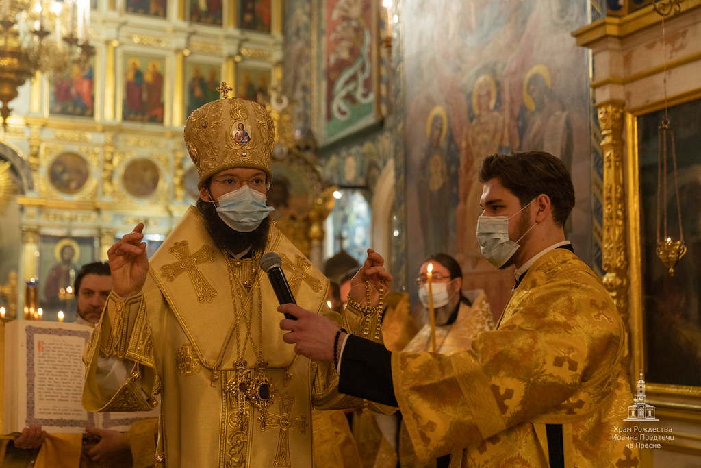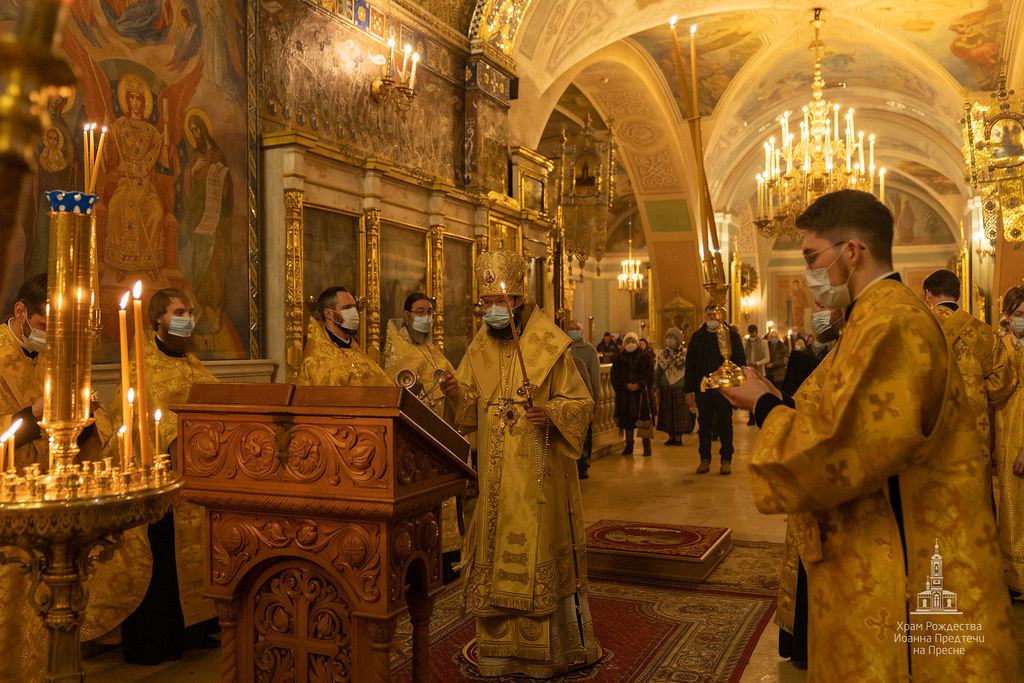 Вечером 20 февраля 2021 года в храме Рождества Иоанна Предтечи на Пресне митрополит Корсунский и Западноевропейский Антоний совершил Всенощное бдение в канун первой подготовительной ко Святой Четыредесятнице недели - Недели о мытаре и фарисее.