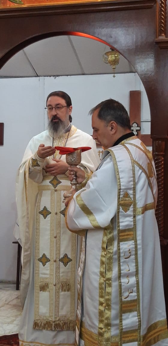 Архимандрит Филипп также приветствовал постоянную прихожанку Подворья Л. Кульчицкую, поздравил ее с возвращением в Ливан и вручил заздравную просфору.