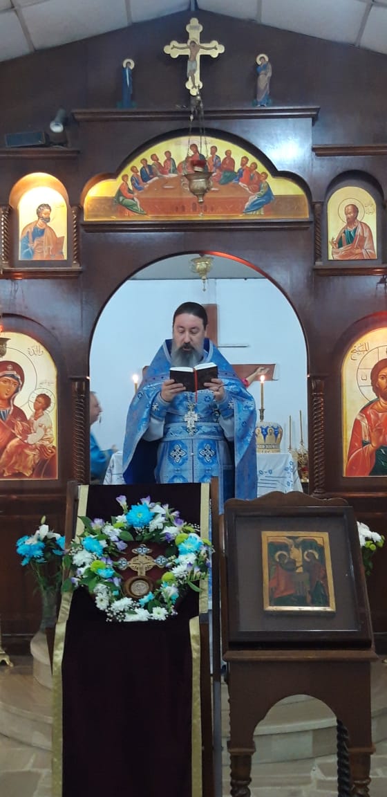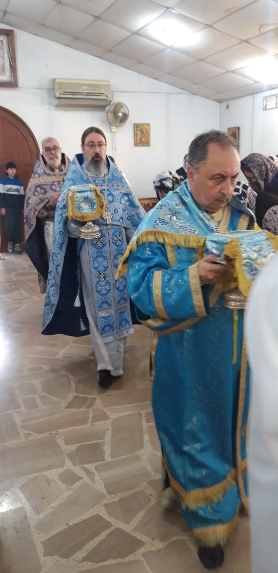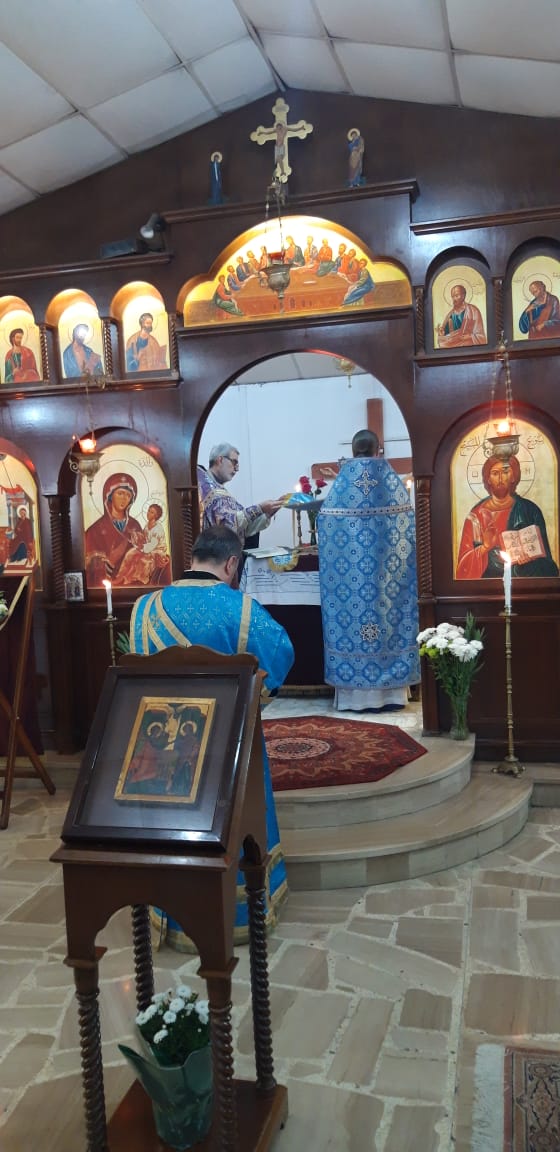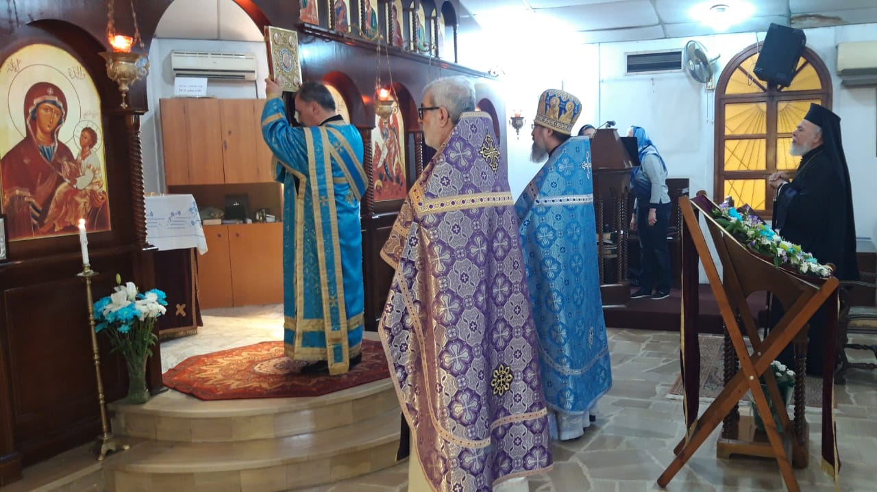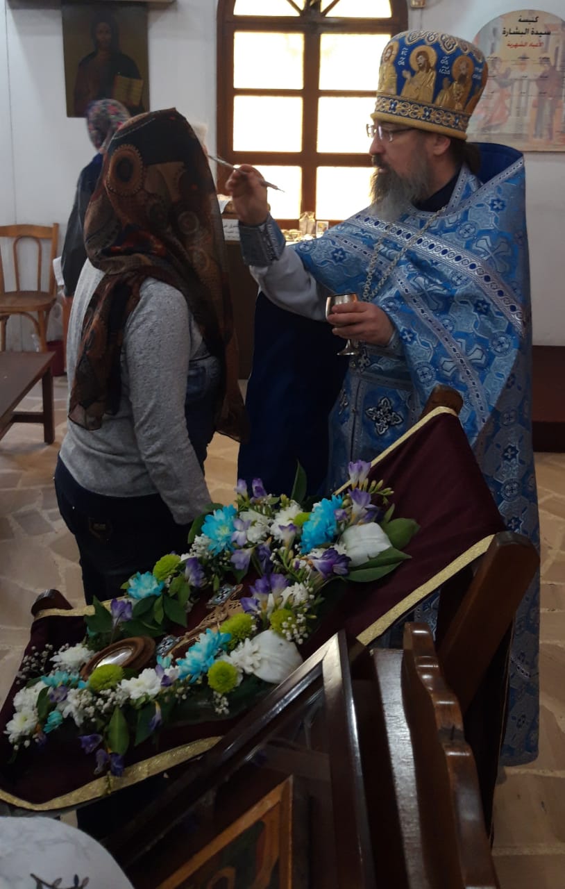 В самый день праздника Утреню, Часы, Изобразительны и Вечерню в соединении с Божественной литургией возглавил архимандрит Филипп в сослужении протоиерея Самира Хури и дьякона Максима Сабаха.