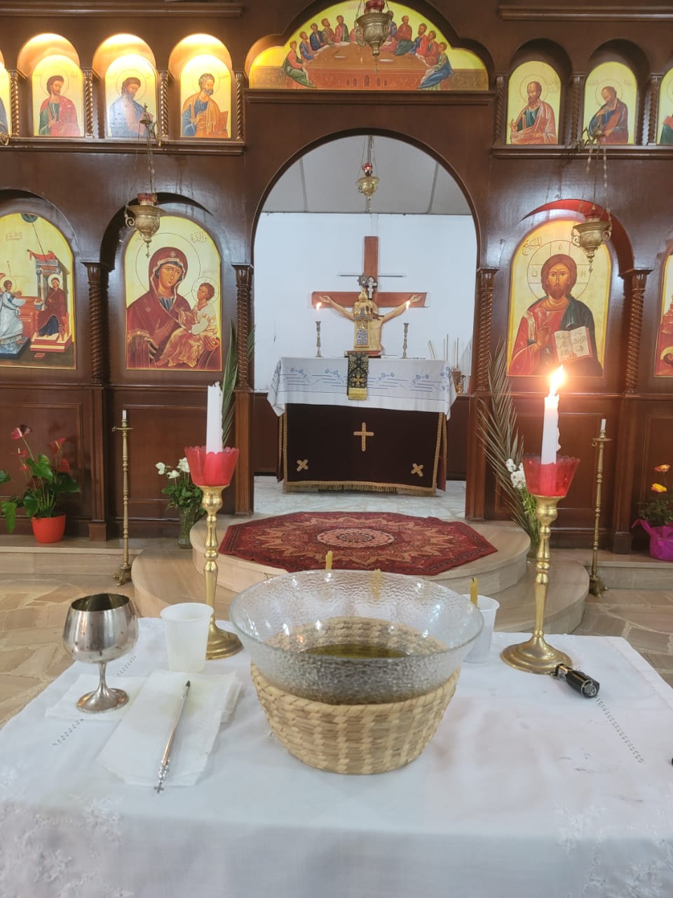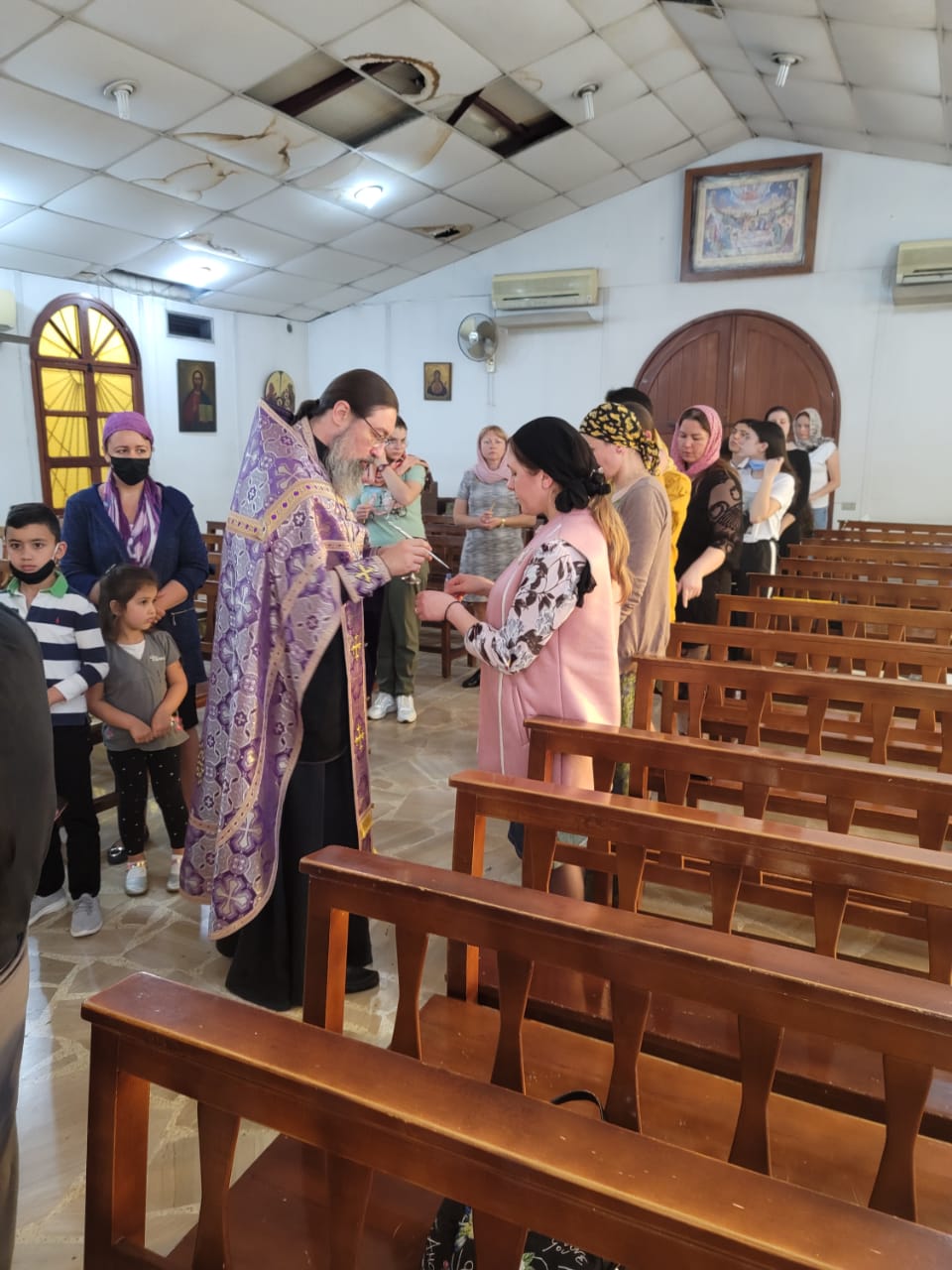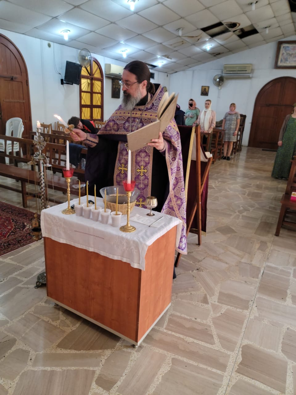 В Великую Среду, 28 апреля, в храме Благовещения Пресвятой Богородицы в Жаль Эль Диб было совершено Таинство Елеосвящения (Маслособорования). Богослужение совершил архимандрит Филипп.