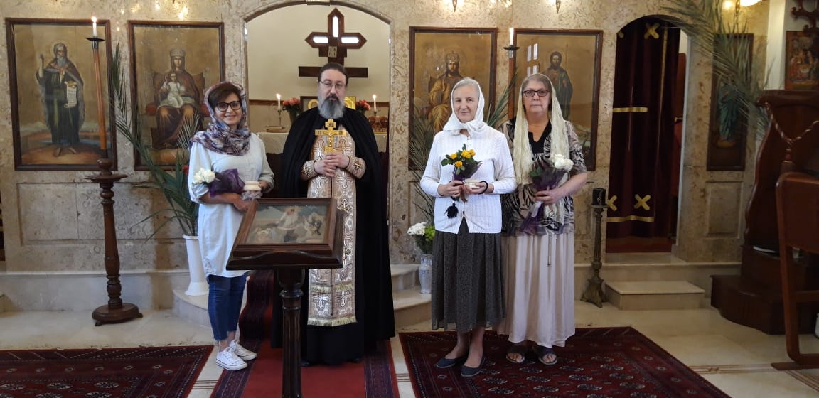 Затем настоятель поздравил с днём Ангела постоянных прихожанок Подворья И. Зеленину, И. Салху и И. Kaнж и подарил им памятные подарки.