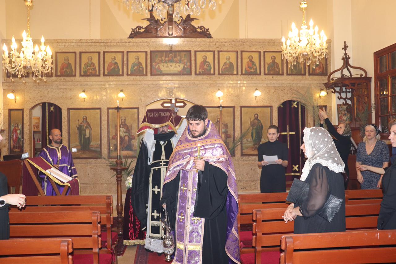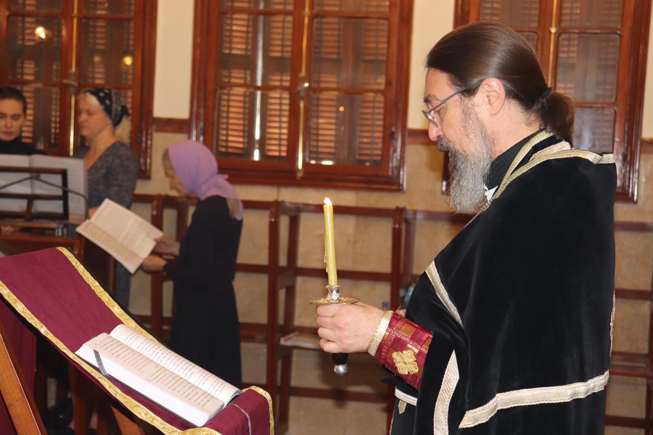 В Великую Пятницу, 30 апреля, Вечерню с выносом Плащаницы Спасителя в храме св. Иоанна Предтечи совершил архимандрит Филипп в сослужении клирика Киевской митрополии Украинской Православной Церкви иерея Сергия Шульгача.