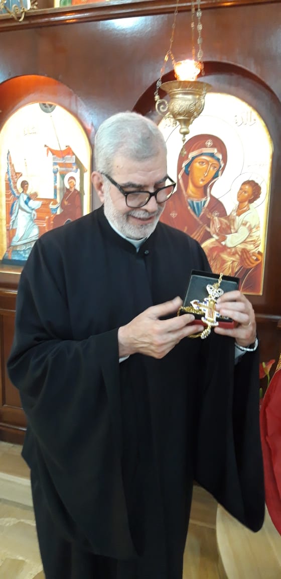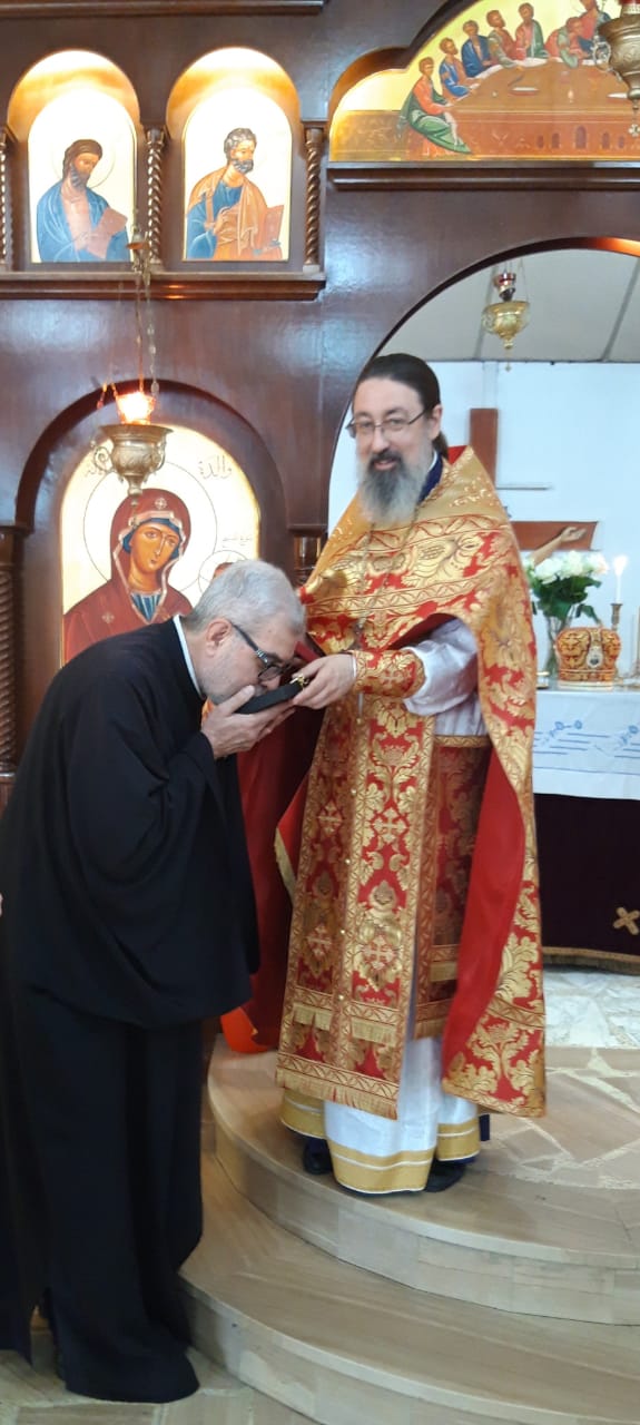 После отпуста Божественной литургии архимандрит Филипп тепло приветствовал протоиерея Самира, поздравил его с праздником Светлого Христова Воскресения и вручил памятные подарки.