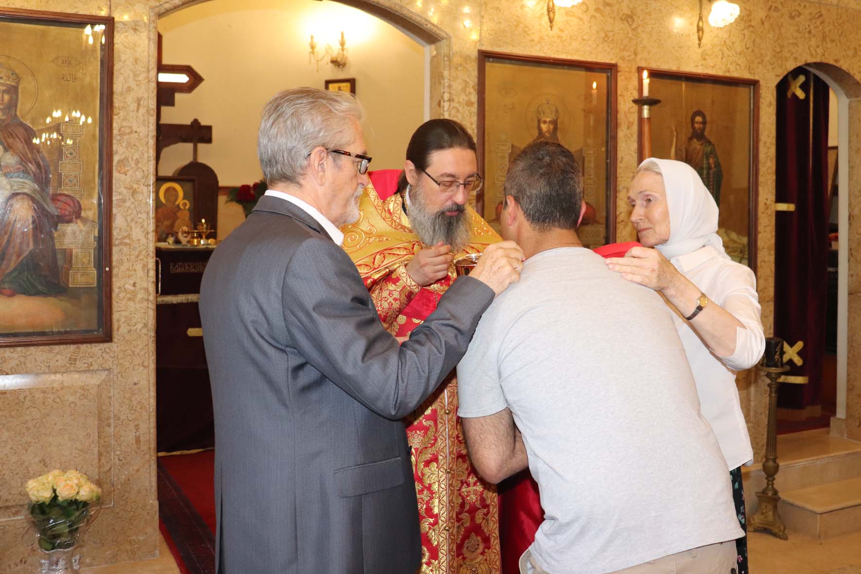 На сугубой ектении прозвучали также прошения о здравии всех пострадавших от взрыва в Бейруте и о всех благотворителях Подворья.
