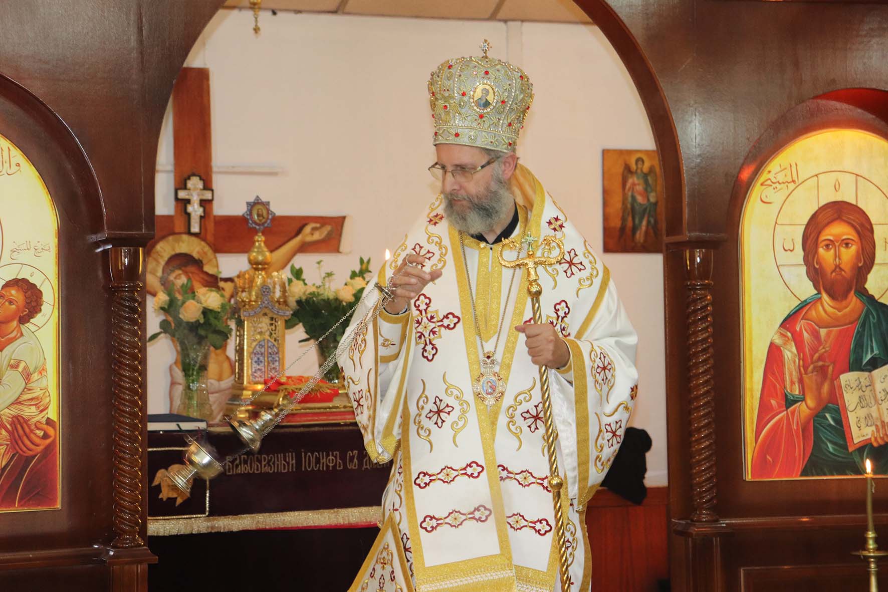 Сейчас мы находимся в Благовещенском храме в Жаль Эль-Диб, где вместе с общиной Русской Церкви молитвенно почтили память свв. равноапостольных Кирилла и Мефодия. Для меня, как главы митрополии Гор Ливанских, на территории которой находится этот храм, большой честью является возможность служить здесь сегодня Божественную литургию и разделить этот праздник, как и приближающийся праздник 75-летия основания Подворья Русской Православной Церкви в Ливане. Почти половину от этой даты наш дорогой Владыка Нифон пробыл в России, 44 года. Очень его любим и были рады, что он сегодня был с нами на службе вместе с Его Превосходительством, Послом России в Ливане, и, конечно, мы рады всем верующим, которые пришли сегодня. Они оставили свои страны, но обрели в Ливане свою вторую Родину, оставили свои семьи и родную Церковь, но обрели здесь новые семьи, и все мы здесь Церковь Единая, мы все вместе, одна семья. Мы всегда будем помнить об этом.