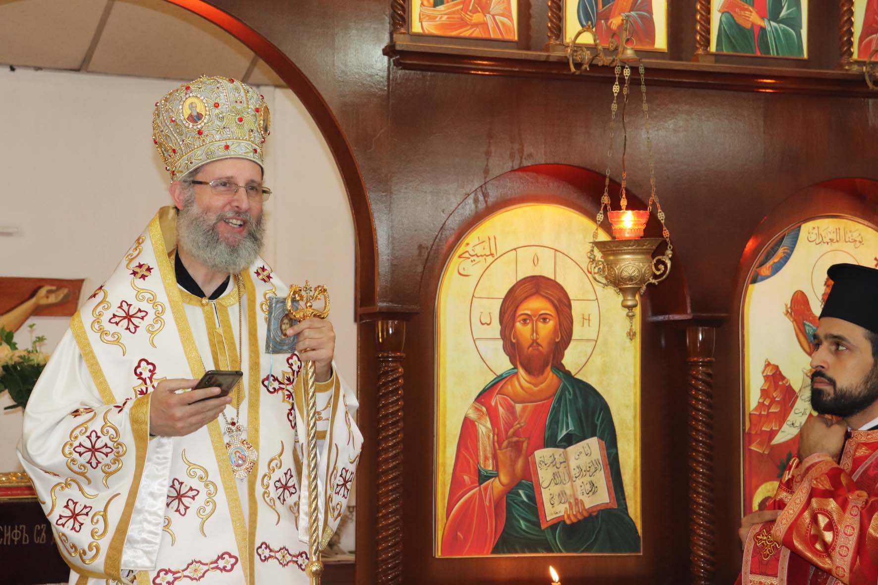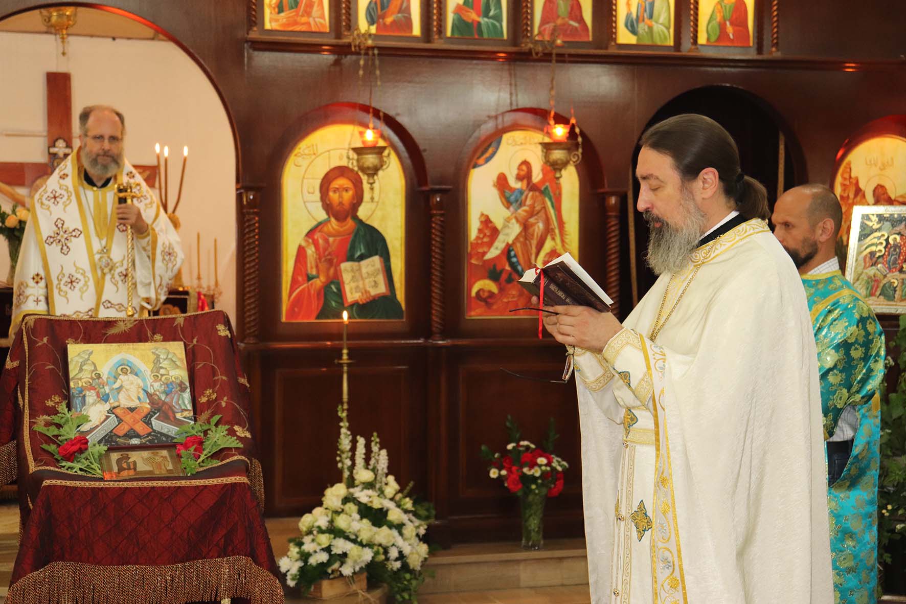За Божественной литургией молился и причащался Святых Христовых Таин, митрополит Филиппопольский Нифон, Представитель Антиохийской Православной Церкви при Святейшем Патриархе Московском и всея Руси и Чрезвычайный и Полномочный Посол Российской Федерации в Ливане А.Н.Рудаков.