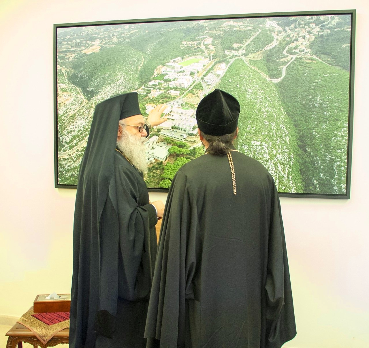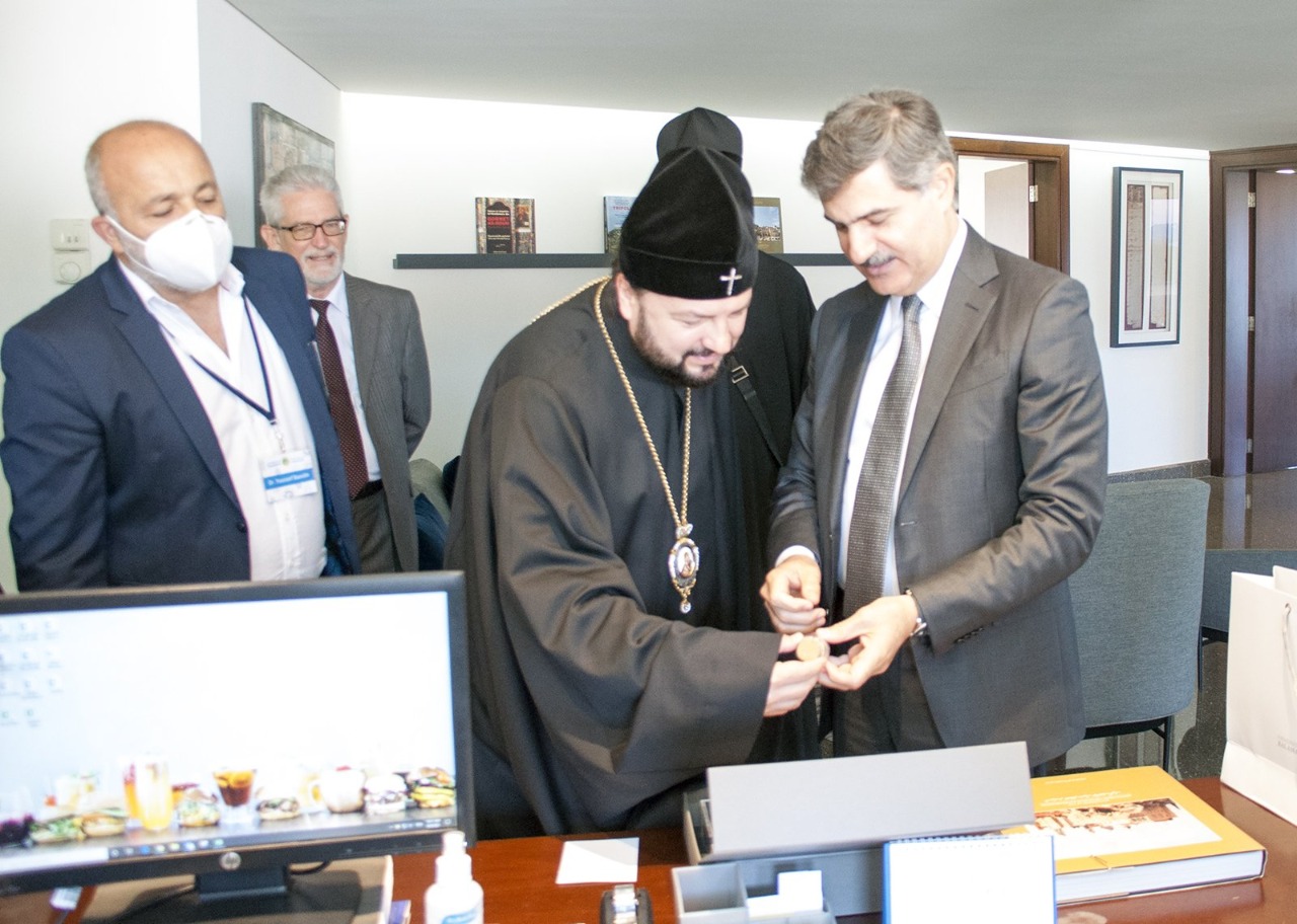 Затем, по предложению Блаженнейшего Патриарха, архиепископ Леонид посетил ректорат университета, где ректор д-р Элиас Варрак рассказал высокому гостю об учебном процессе, представил презентацию и рассказал о современных трудностях в жизни университета.