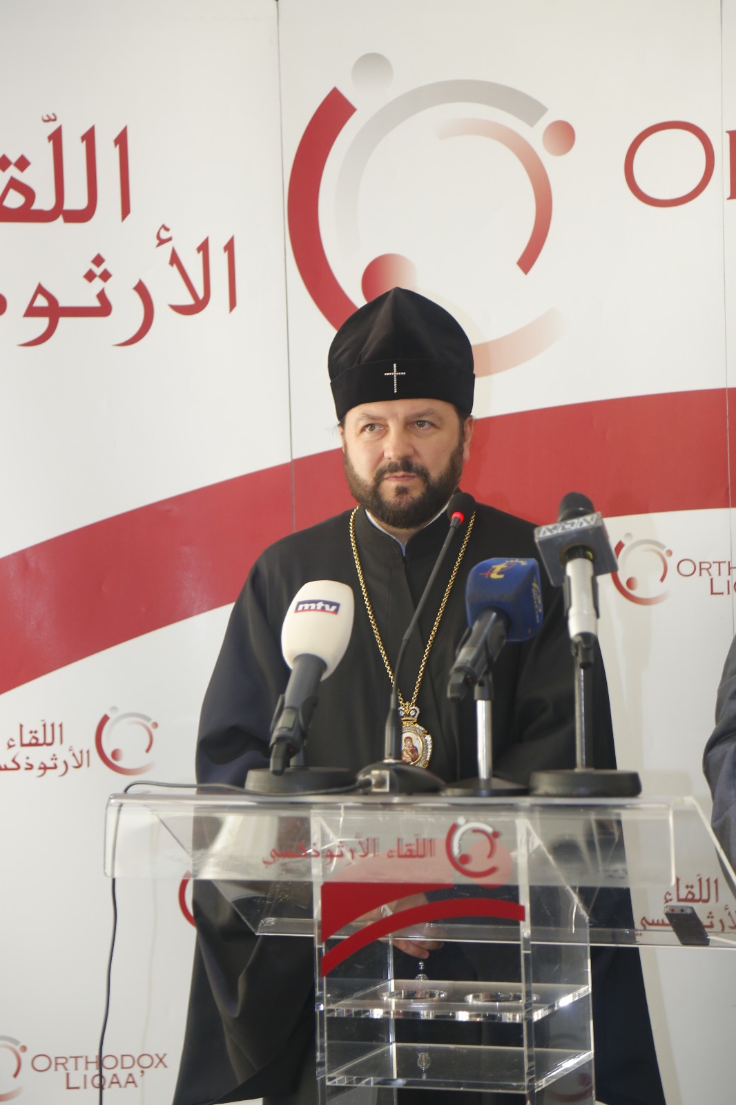 «Ваше Высокопреосвященство, господин посол, мне очень радостно сегодня быть здесь, в штаб-квартире «Orthodox Liqaa», основной, и, я бы сказал, организованной православной общине Ливана. Я ехал сюда по поручению и по благословению Святейшего Патриарха Московского и всея Руси Кирилла. Визит мой очень краткий, двухдневный, но я считаю что он очень состоялся в плане работоспособности и с той базы вопросов, которые мне удалось здесь поднять и решить. И глубоко символично, что перед своим отлётом на Родину мы ставим такую точку, квинтэссенцию нашей встречи в вашем прекрасной штаб-квартире «Orthodox Liqaa». Политическую оценку тех или иных событий, я думаю, нам огласит господин Посол. Я же хотел со своей стороны сказать, что наши Церкви, и Русская Православная Церковь, и Антиохийская Православная Церковь, прежде всего делают всё для того, чтобы людям во всем мире, и в наших прежде всего странах, жилось легче.