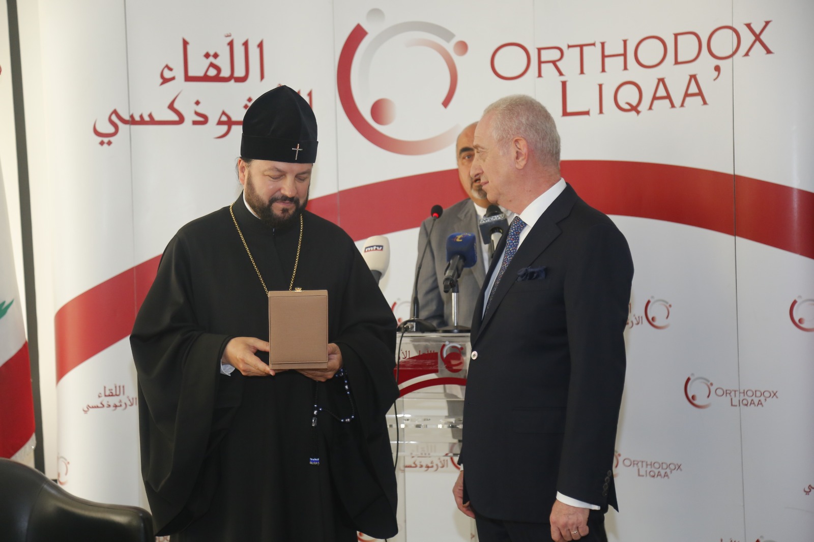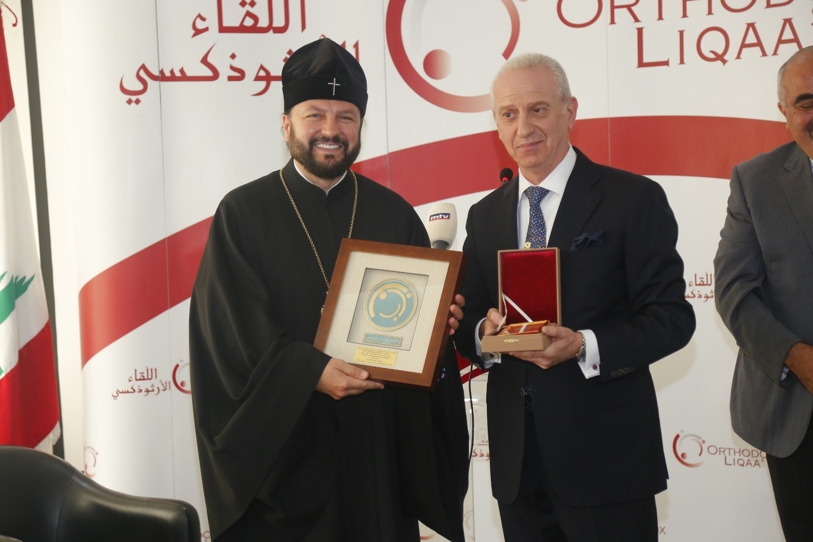 Генеральный секретарь «Ликаа ортодокси» Марван Абу Фадель вручил архиепископу Леониду памятный знак «Православного собора».