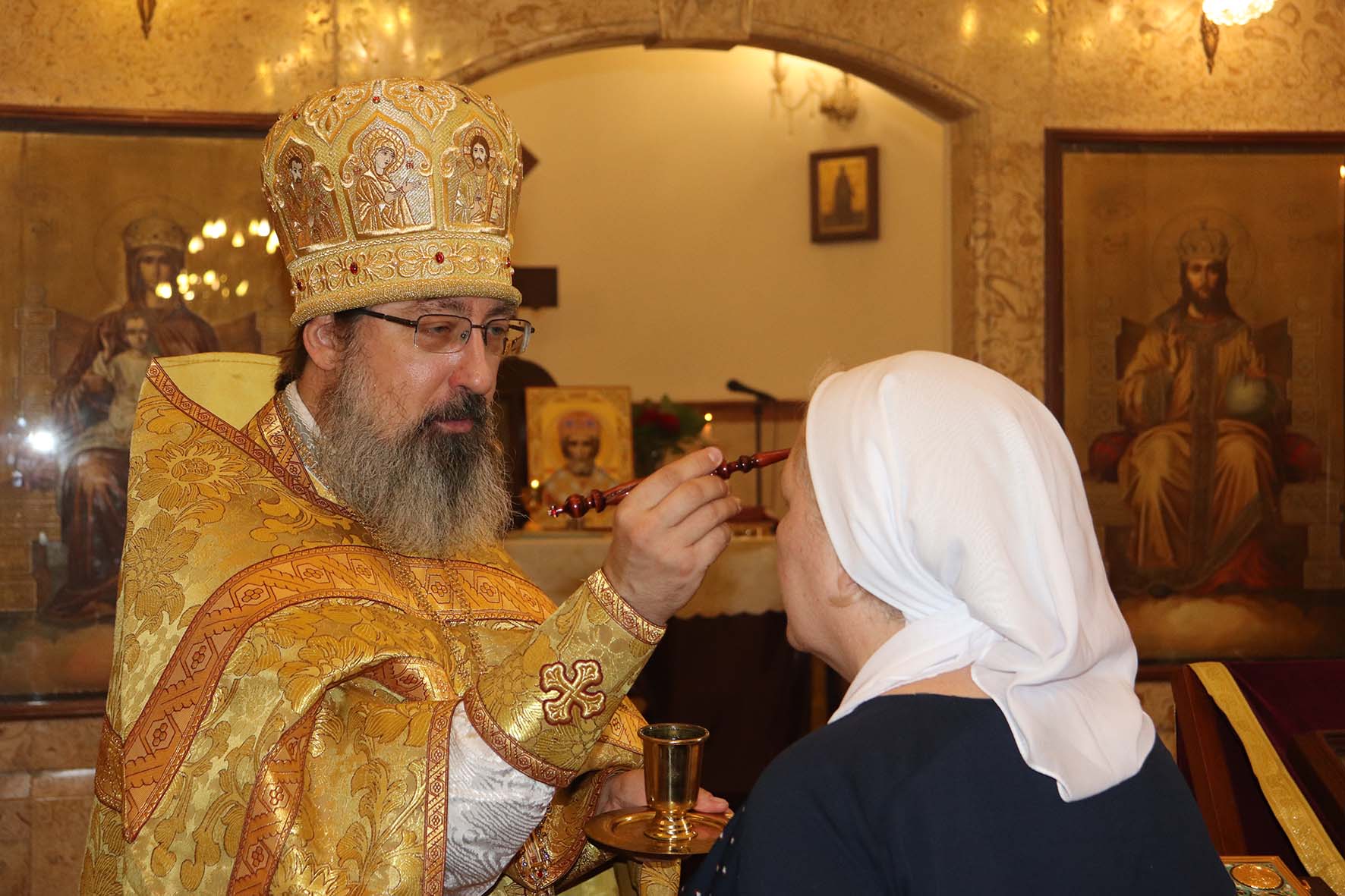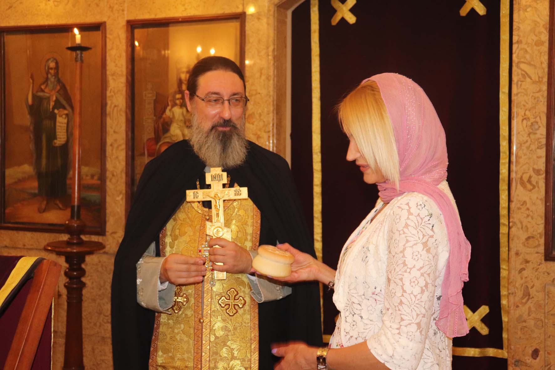 Затем настоятель Подворья поздравил с прошедшим Днём рождения постоянную прихожанку и сотрудницу Подворья Светлану Бахмат, а также М. Ктейш, Н. Дорогову с возвращением в Ливан и Т. Ганчеву с Таинством Крещения и провозгласил многолетие.