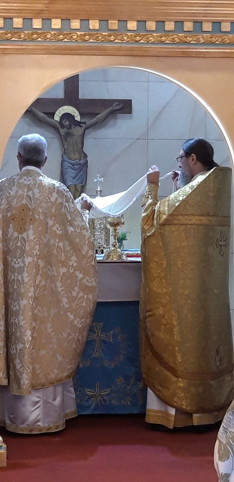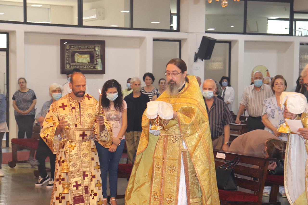 После отпуста Божественной литургии архимандрит Филипп тепло приветствовал сослужащее духовенство протоиерея Самира и архимандрита Исаака и поблагодарил за возможность совершать богослужения в старом храме Благовещения Пресвятой Богородицы в Жаль Эль Диб.