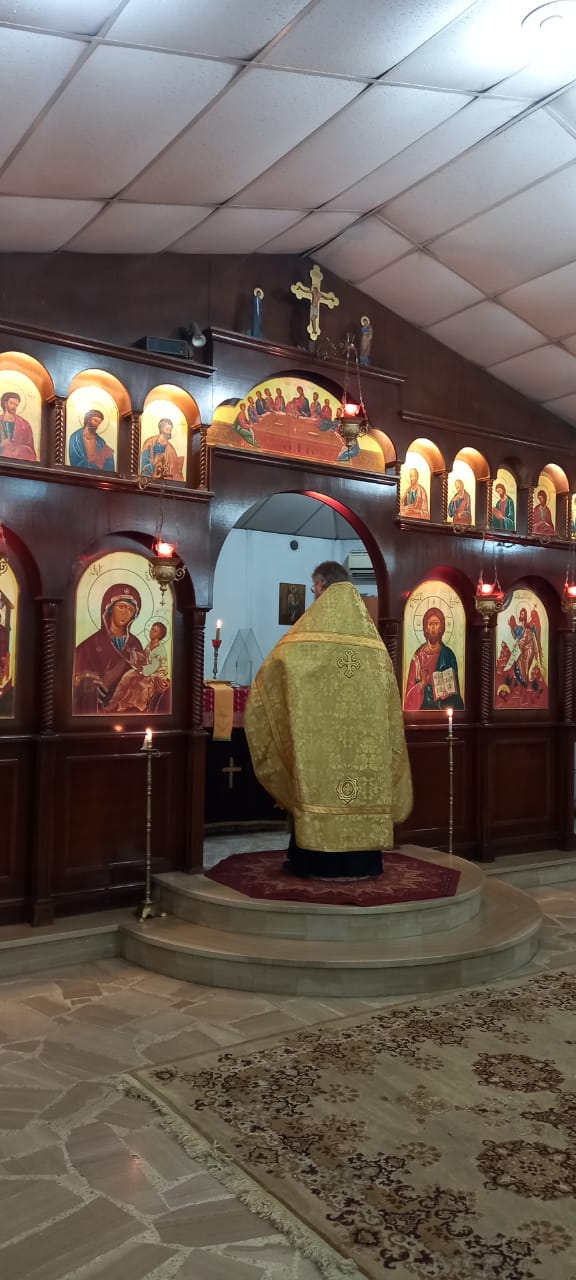 За вечерней молился настоятель Подворья Русской Православной Церкви архимандрит Филипп.