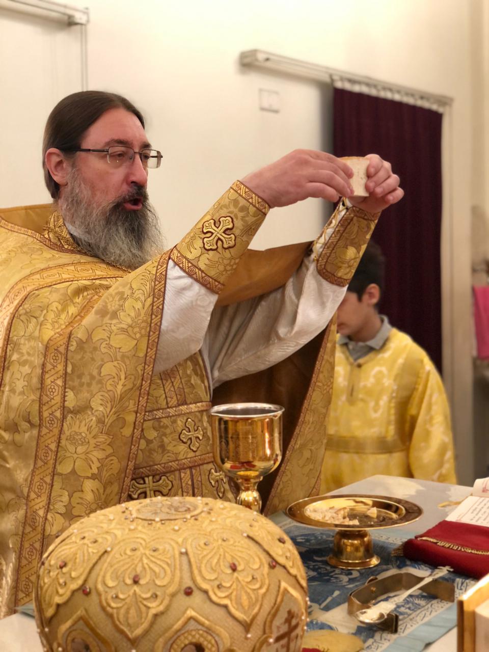 После сугубой ектении были вознесены молитвенные прошения об избавлении от коронавирусной инфекции, прошения о здравии и крепости духа врачей и исцелении заболевших людей. Также была вознесена молитва о мире на Украине.