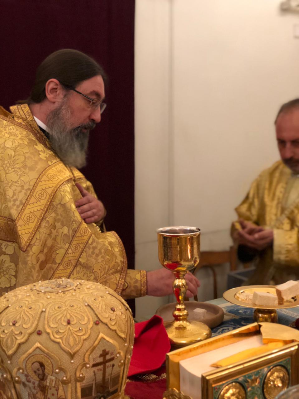 В воскресенье, 31 октября, в Неделю 19-ю по Пятидесятнице Божественную литургию в храме св. Иоанна Предтечи совершил архимандрит Филипп в сослужении иеромонаха Нестора (Чайки), клирика Киевской митрополии, преподавателя КДАиС и дьякона Максима Сабаха.