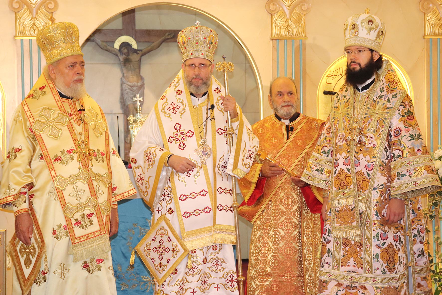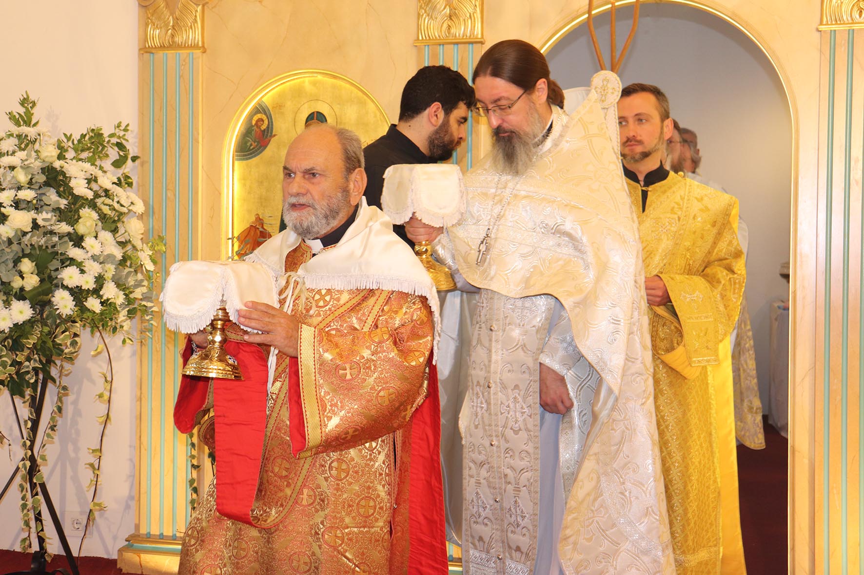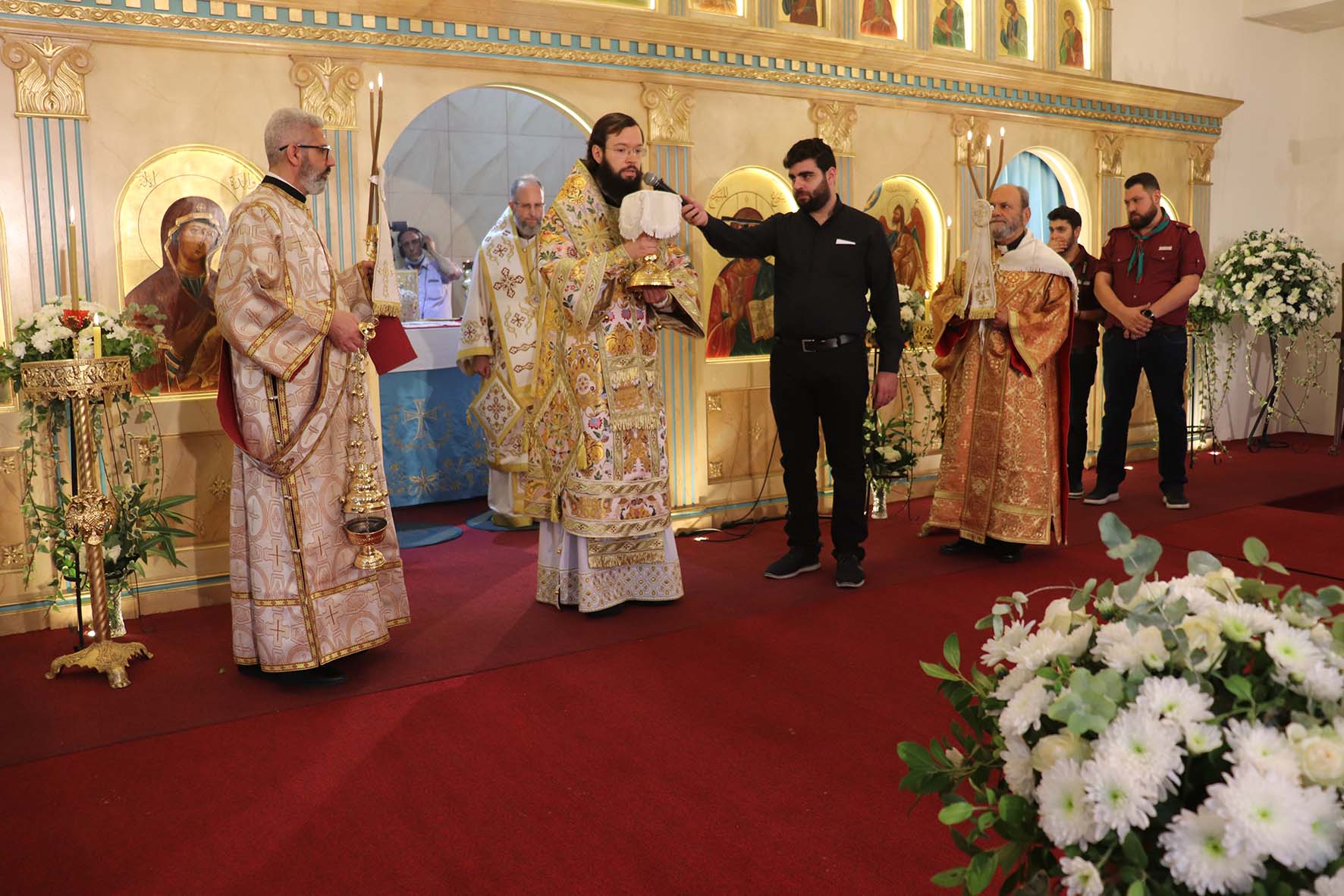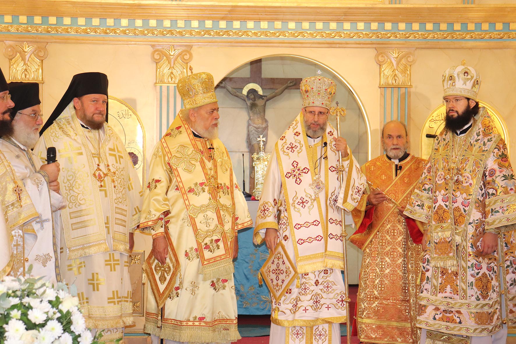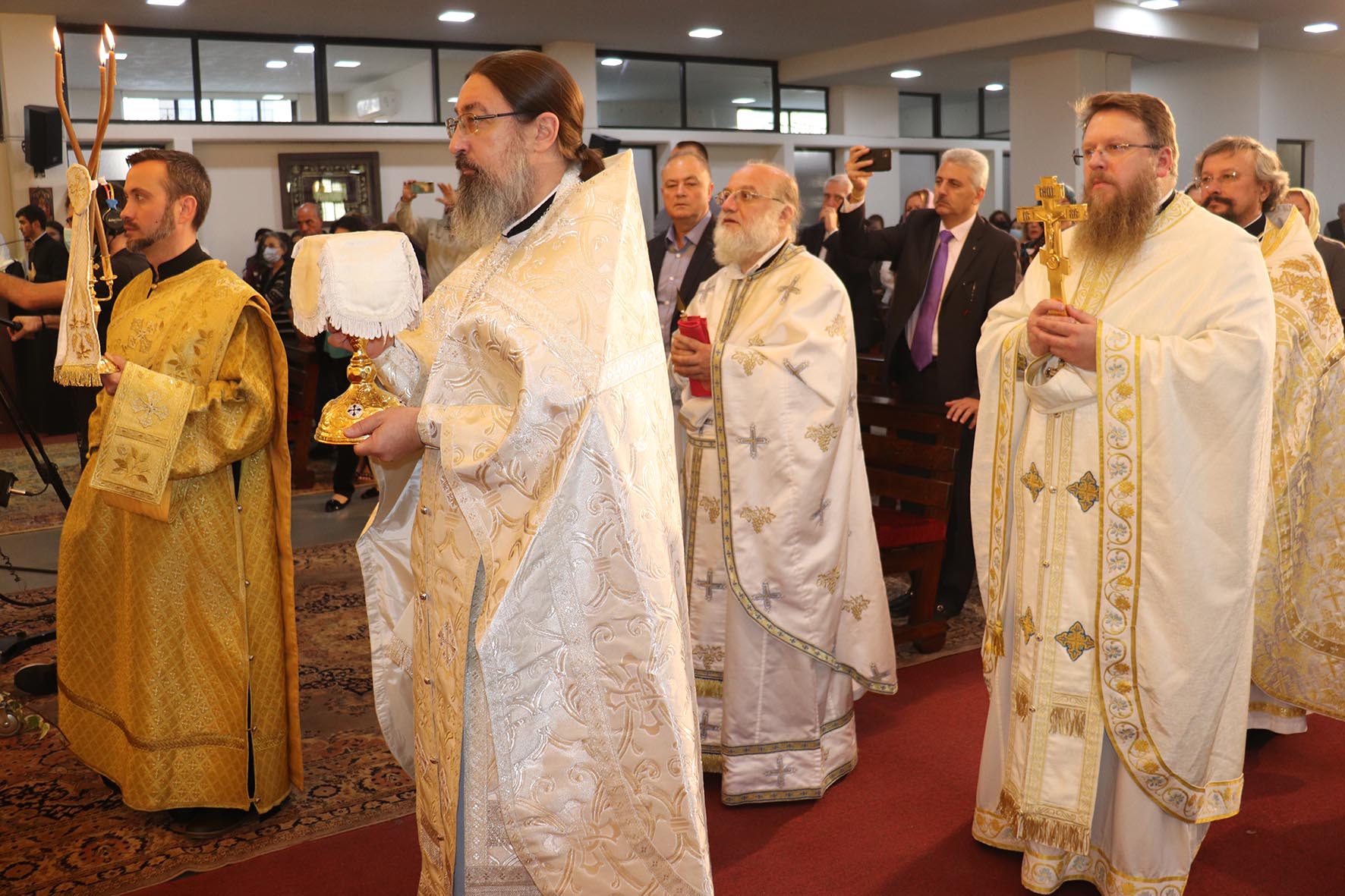Архиереям сослужили представитель Православной Церкви Чешских земель и Словакии при Патриархе Московском и всея Руси архимандрит Серафим (Шемятовский), настоятель подворья Русской Православной Церкви в Бейруте архимандрит Филипп (Васильцев), представитель Патриарха Московского и всея Руси при Патриархе Антиохийском игумен Арсений (Соколов).