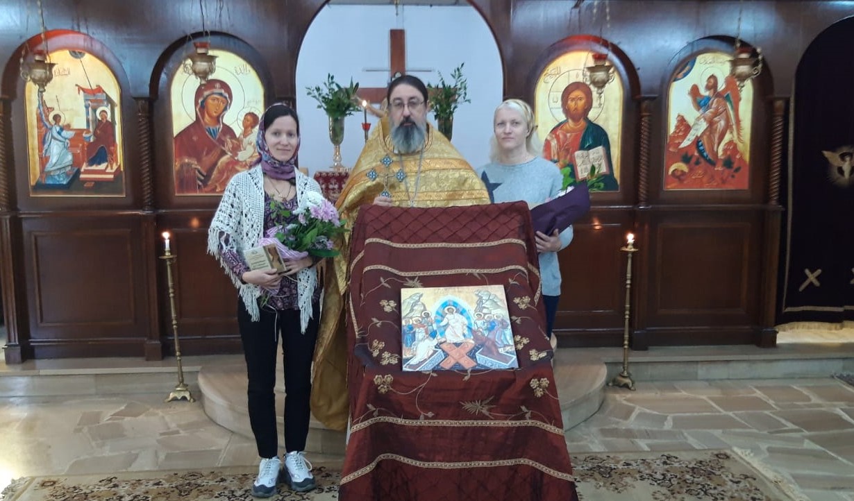 После отпуста Божественной литургии настоятель поздравил с прошедшим днём Ангела регента Подворья Екатерину Баранову и прихожанку Екатерину Рахмину и подарил им по букету цветов.
