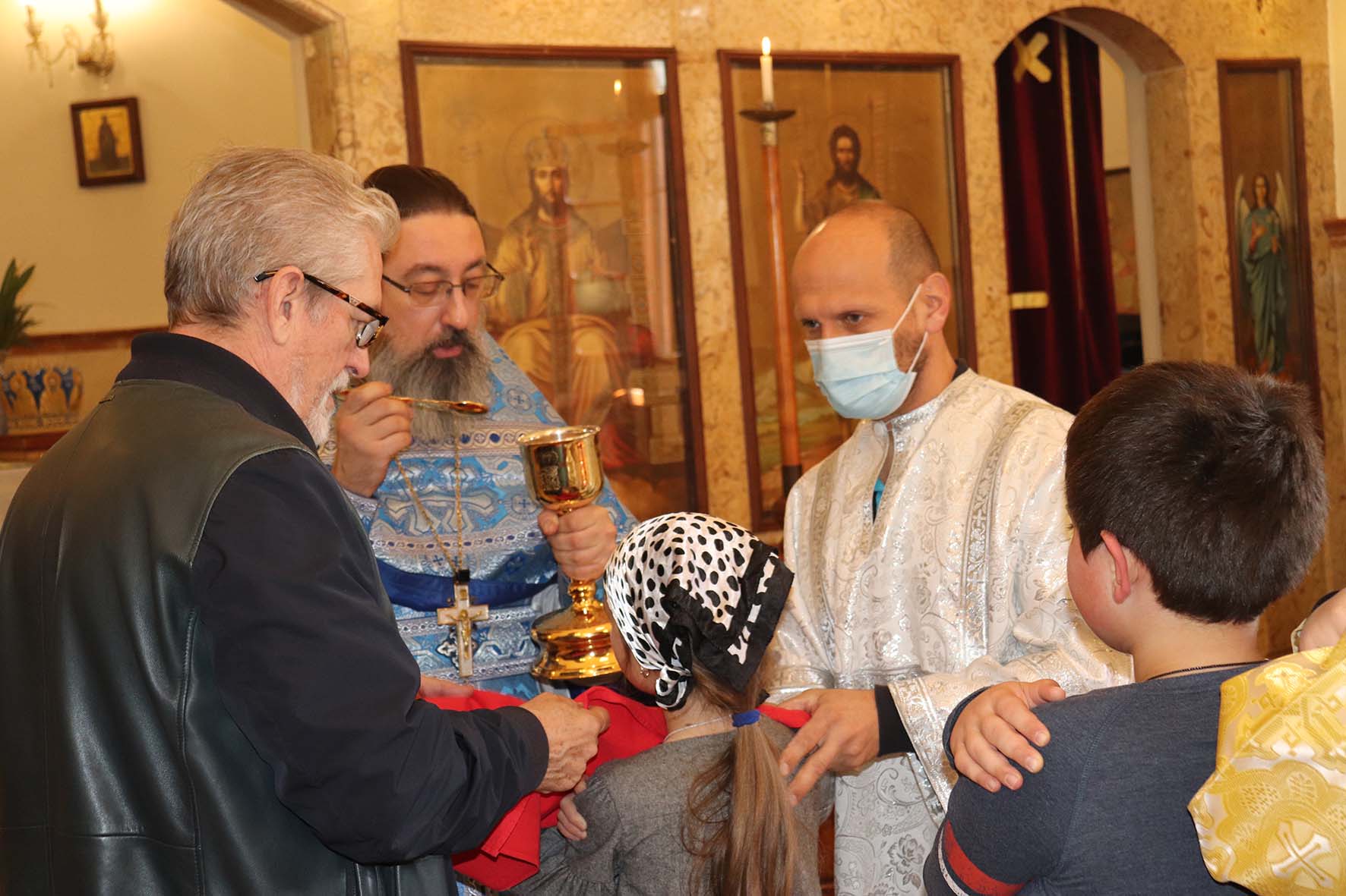После сугубой ектении были вознесены молитвенные прошения об избавлении от коронавирусной инфекции, прошения о здравии и крепости духа врачей и исцелении заболевших людей.