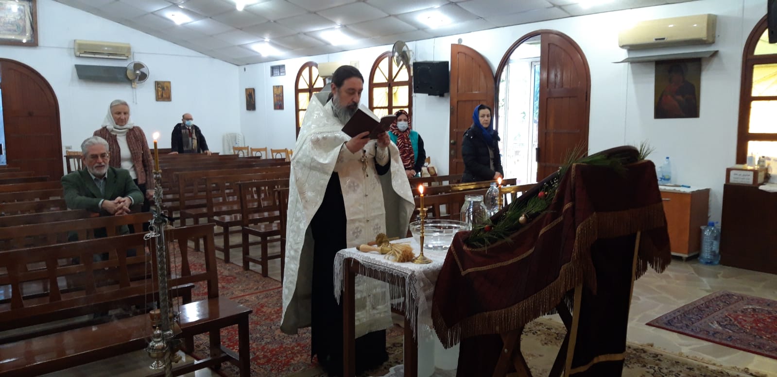 Во вторник, 18 января, в Навечерие Богоявления Господня в храме Благовещения Пресвятой Богородицы в Жаль Эль Диб было совершено чинопоследование Великого освящения воды.